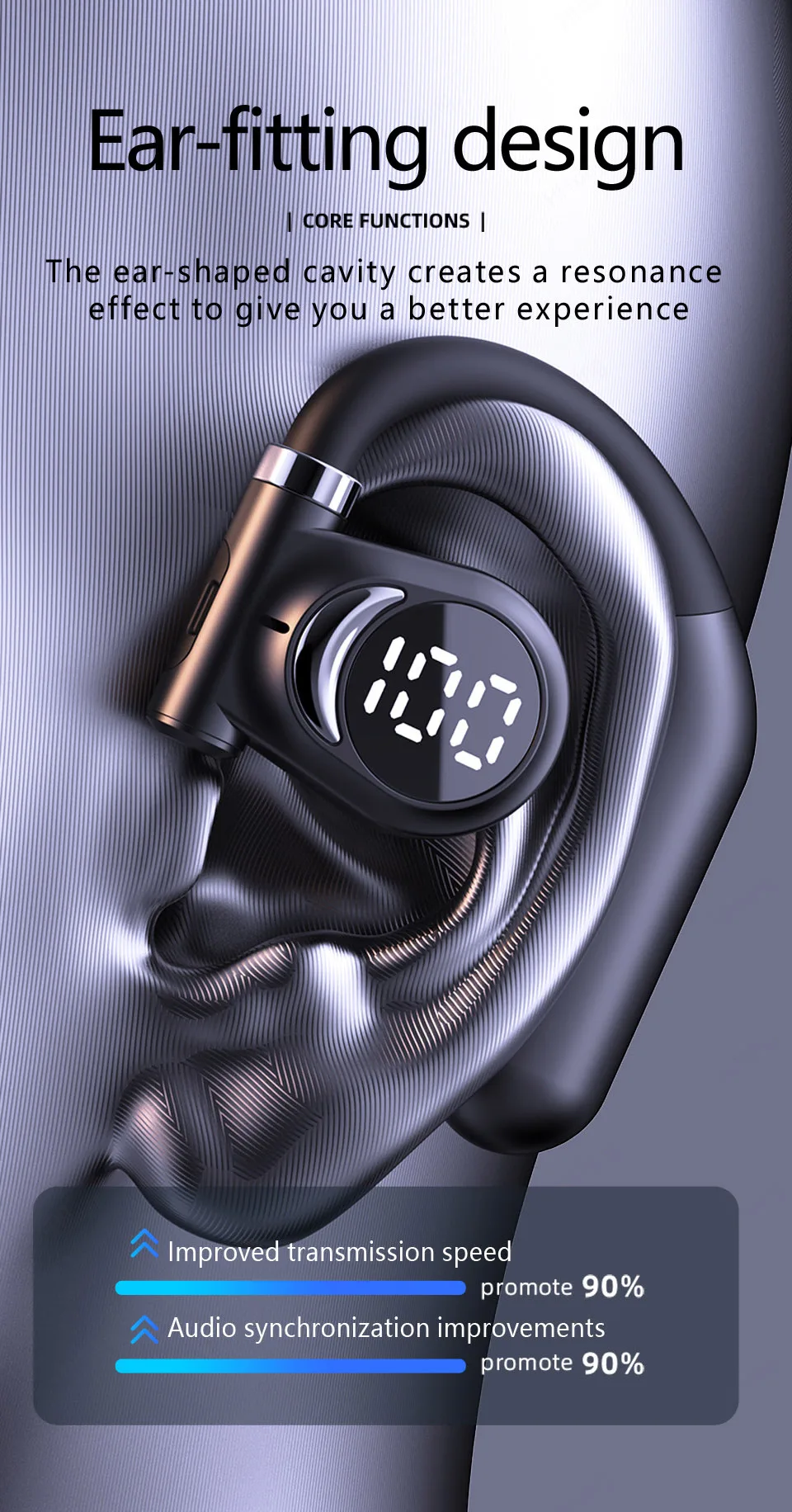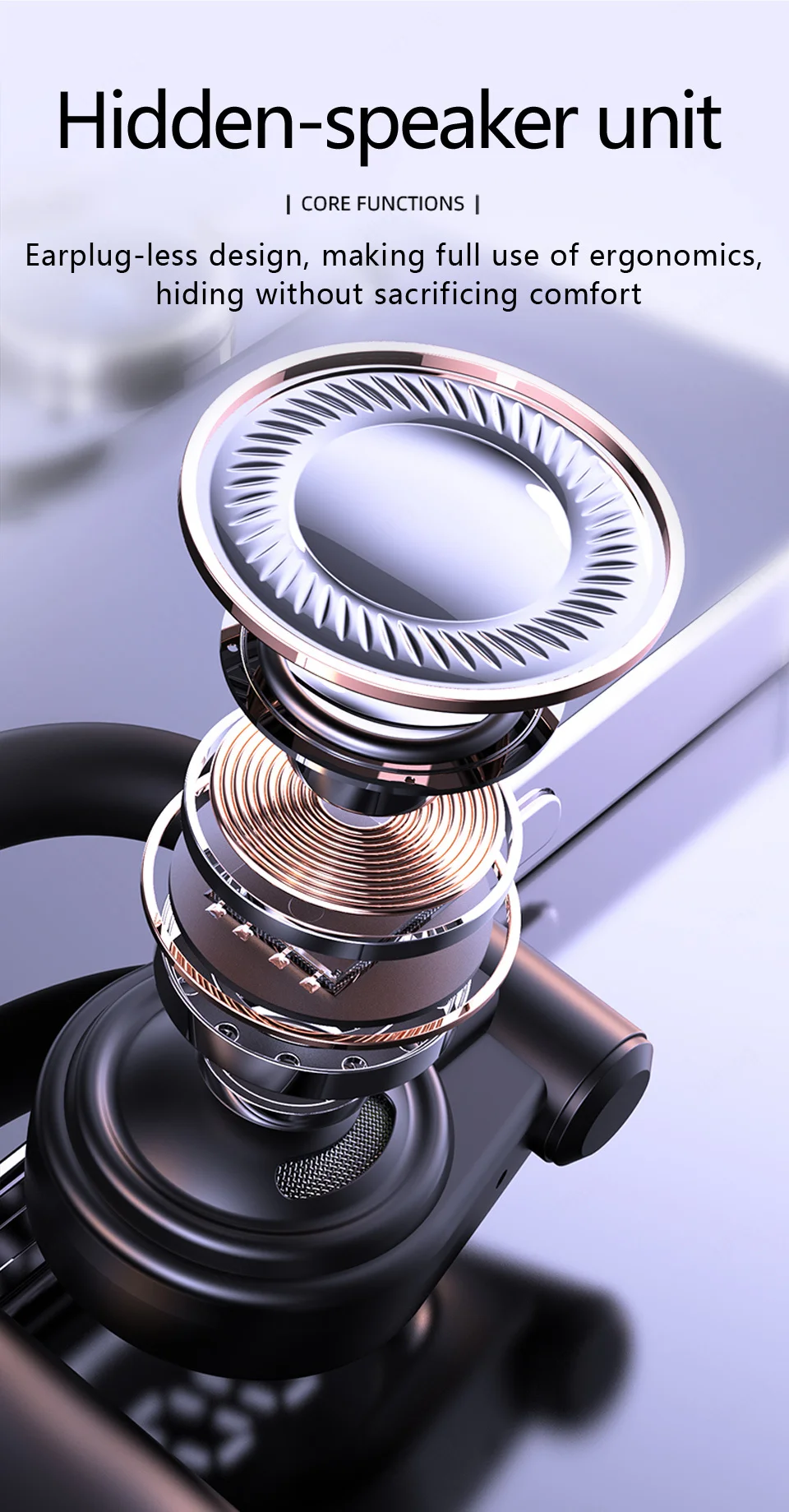 1. Diseño de conducción de aire Nuevo: es cómodo de usar sin entrar en el oído, y no habrá dolor en los oídos si se usa durante mucho tiempo.