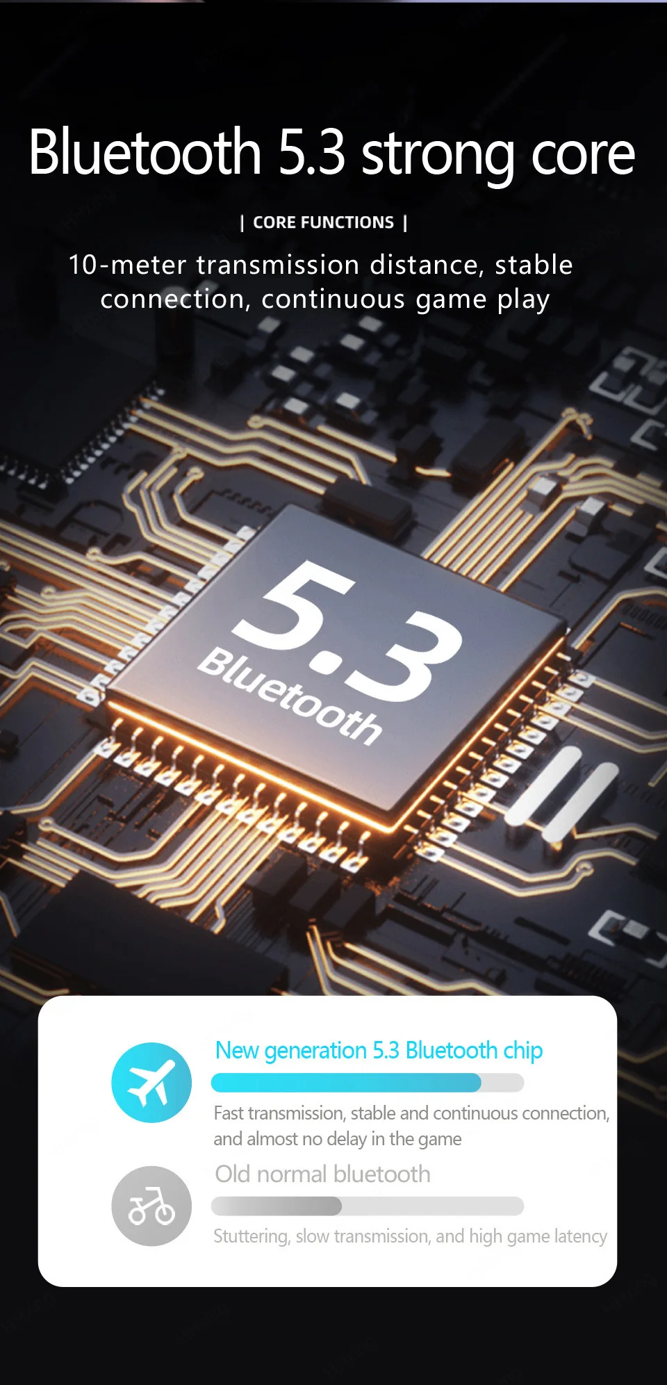 3.Bluetooth 5,3: utiliza el chip Bluetooth de versión alta 5,3 recientemente actualizado, tiene una mayor compatibilidad y una transmisión de datos más rápida y estable.