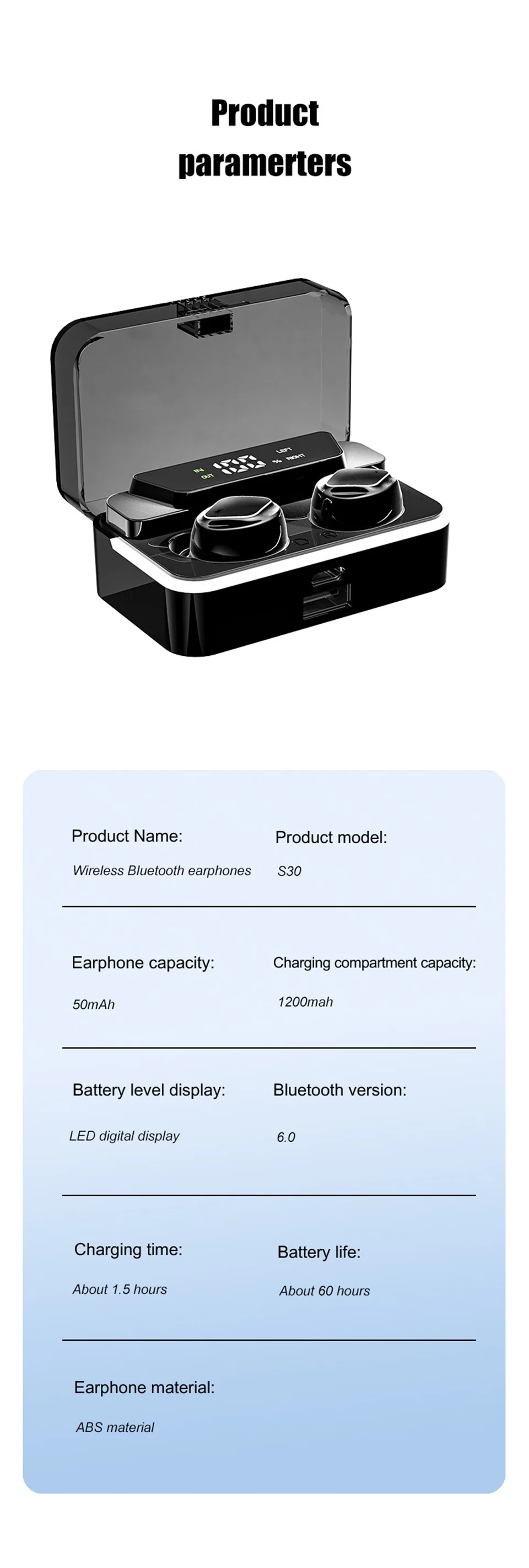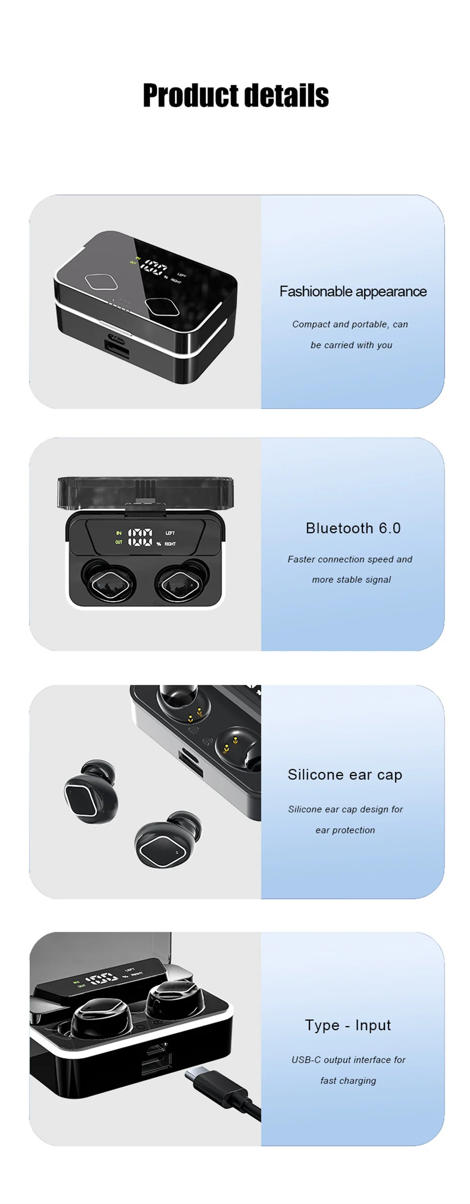 ♪ Verdadera comunicación inalámbrica:Disfrute de la libertad de movimiento sin la sujeción de los cables.Los auriculares inalámbricos Bluetooth TWS brindan una verdadera comunicación inalámbrica para una experiencia de audio ininterrumpida.
