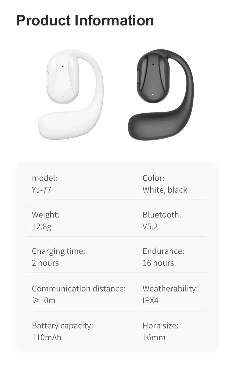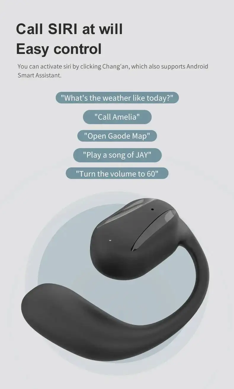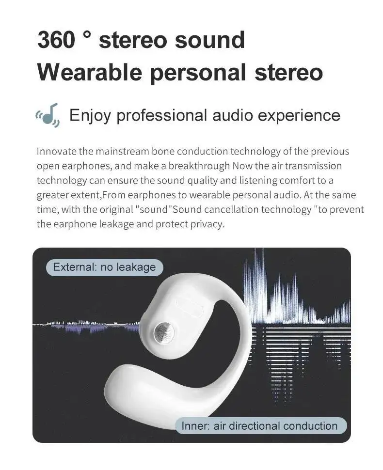 Conucción de aire Bluetooth inalámbrico abierto único auriculares portátiles con reducción de ruido auriculares indoloros de larga duración para deporte