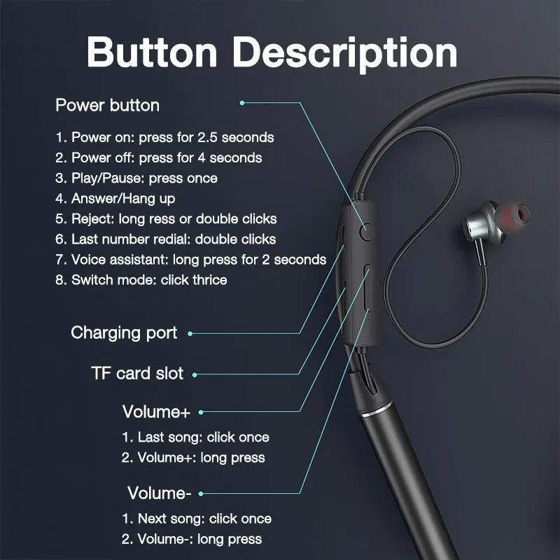 Comprar Auriculares inalámbricos con Bluetooth, dispositivo de audio con resistencia de 180 horas, con micrófono, estéreo, banda para el cuello, deportivos, para tarjeta TF