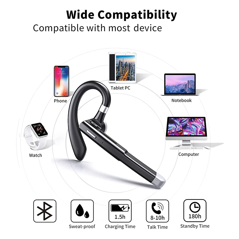 Comprar Auriculares inalámbricos con Bluetooth, manos libres, auriculares de un solo oído, micrófono con cancelación de ruido para oficina/conducción A