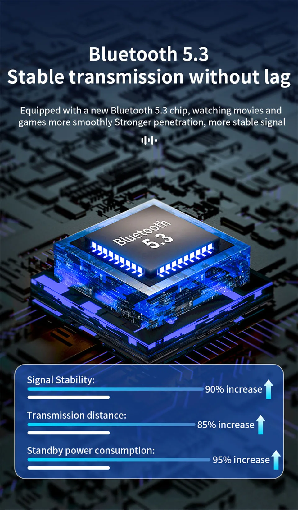 ♪ La tecnología BT5.3 brinda una conexión inalámbrica más estable y rápida a su dispositivo, lo que le permite disfrutar de llamadas estables y música hermosa.