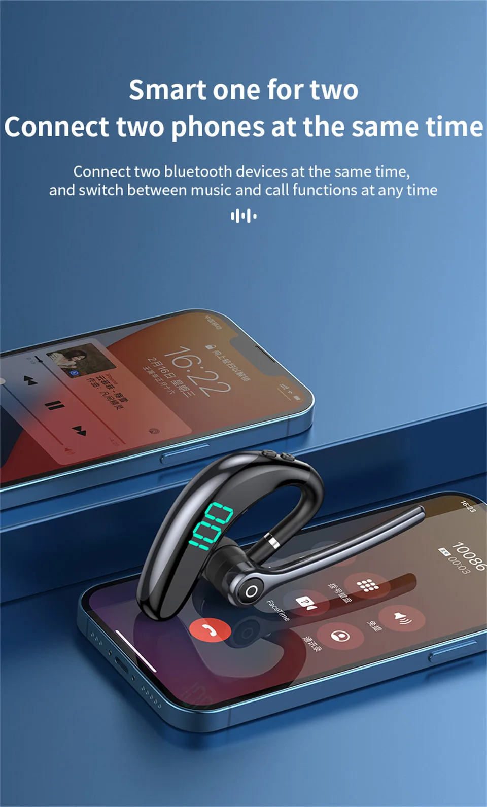 ♪ Los auriculares Bluetooth inteligentes de uno a dos admiten la conexión Bluetooth simultánea a dos dispositivos.