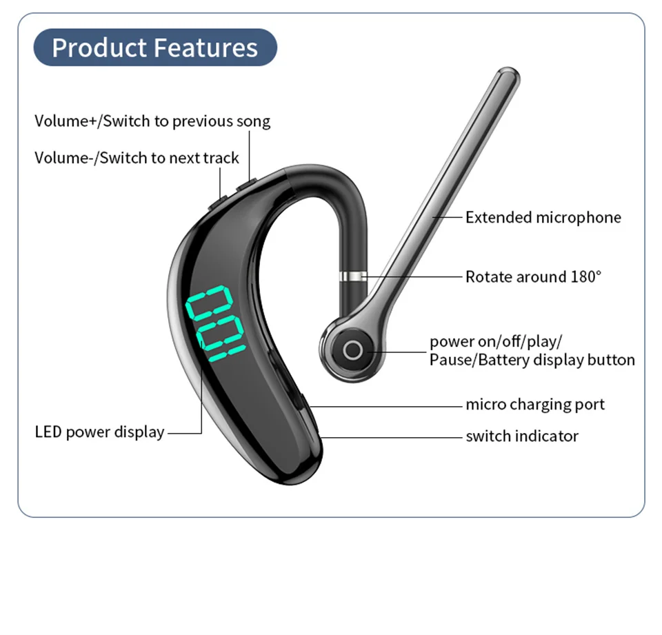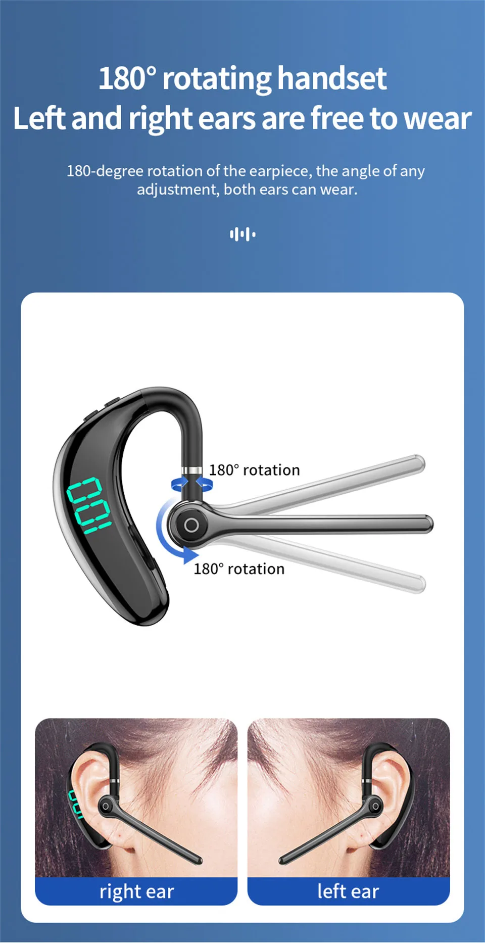 ♪ Se adopta un diseño de gancho para la oreja suave, flexible y seguro, con rotación bidireccional de 180 grados y ajuste arbitrario de los ángulos de la oreja izquierda y derecha para garantizar una comodidad y estabilidad incomparables al moverse.