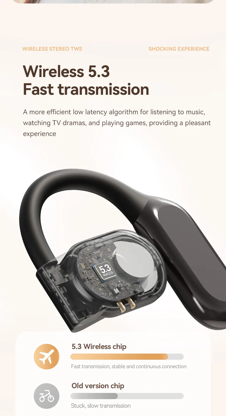 ♪ Baja latencia:La tecnología BT5.3 brinda una conexión inalámbrica más estable y rápida a su dispositivo, diga adiós al retraso del audio del juego y disfrute de la libertad inalámbrica.