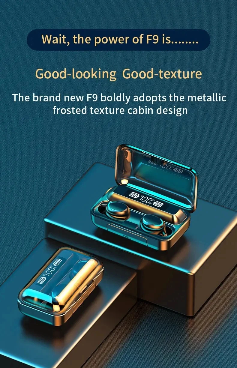 Descripción• Tecnología Bluetooth: experimente una conectividad perfecta con los auriculares inalámbricos Bluetooth de F9.Estos auriculares ofrecen un rango de conexión estable para disfrutar de la música ininterrumpidamente.• Diseño resistente al agua: No hay necesidad de preocuparse por salpicaduras o sudor que arruinen su experiencia auditiva.Los auriculares F9 cuentan con un diseño resistente al agua, lo que garantiza durabilidad y longevidad.• Estuche de carga de gran capacidad: nunca te preocupes por quedarte sin cargo.El F9 viene con un estuche de carga de gran capacidad que proporciona múltiples cargas, lo que garantiza que puedas disfrutar de tu música en cualquier momento y lugar.• Tecnología híbrida: mejore su experiencia de audio con la tecnología híbrida de F9.Ofrece un sonido claro y nítido, haciendo que cada nota y detalle sean audibles.• Estilo intrauditivo: Diseñados para brindar comodidad y un ajuste seguro, el estilo intrauditivo de estos auriculares garantiza que permanezcan en su lugar durante su entrenamiento o mientras se relaja.• Material plástico: fabricados con plástico duradero, estos auriculares están diseñados para resistir el desgaste diario y ofrecen un rendimiento duradero.