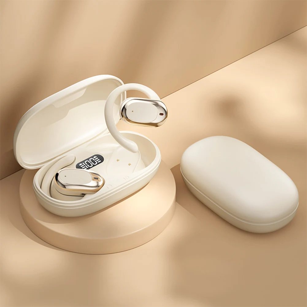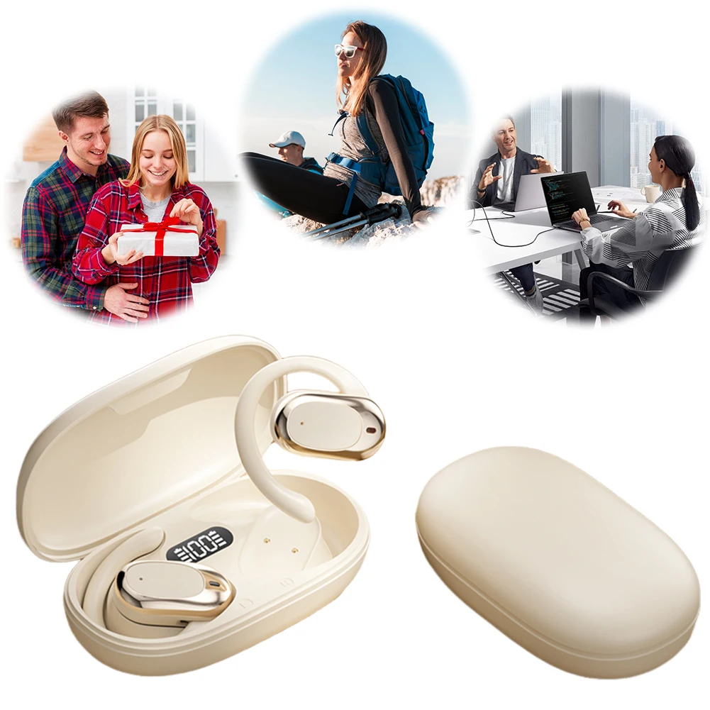 2.Calidad de audio excepcional:Utilizando la tecnología BT 5.4, estos auriculares traductores de aire ofrecen un sonido potente y efectos envolventes.La función de llamada de cancelación de ruido de alta definición garantiza conversaciones claras en entornos ruidosos, mientras que el audio con latencia casi cero mantiene las experiencias de video y juegos perfectamente sincronizadas.Compatible con sistemas iOS y Android para mayor comodidad.