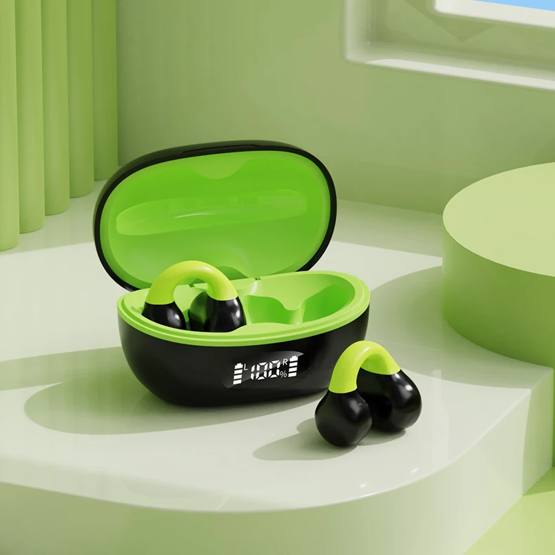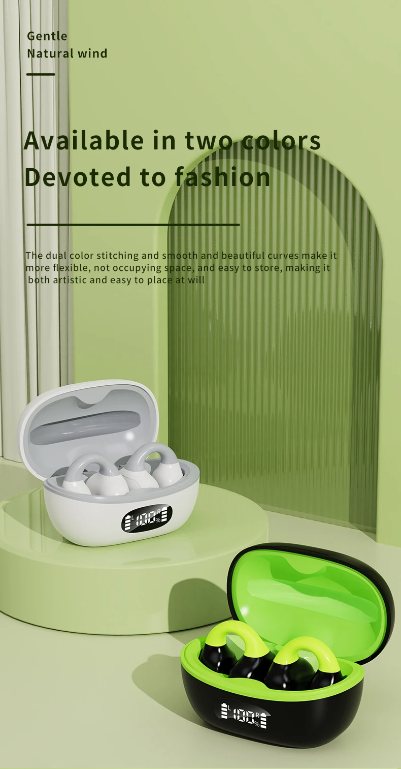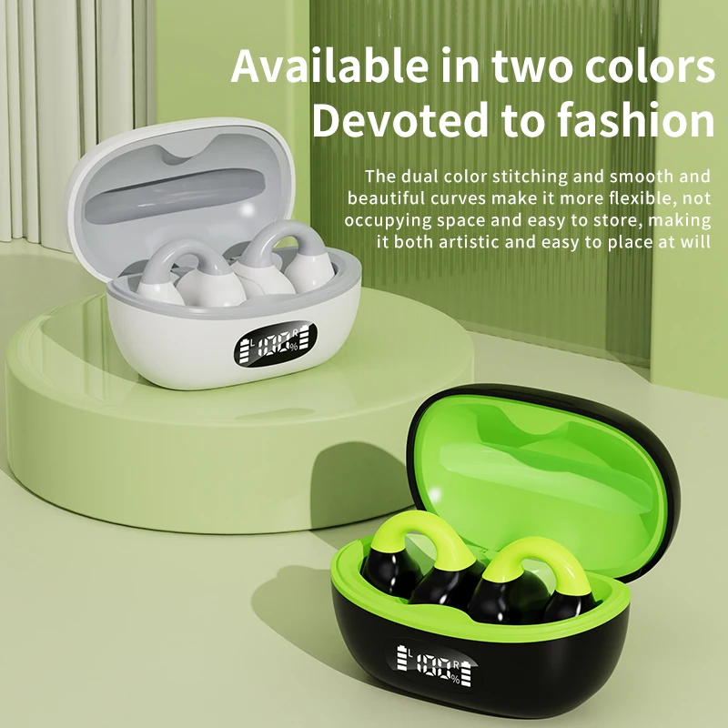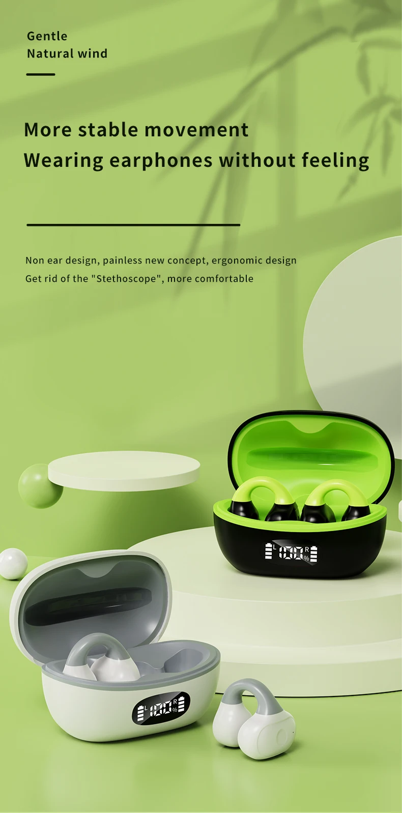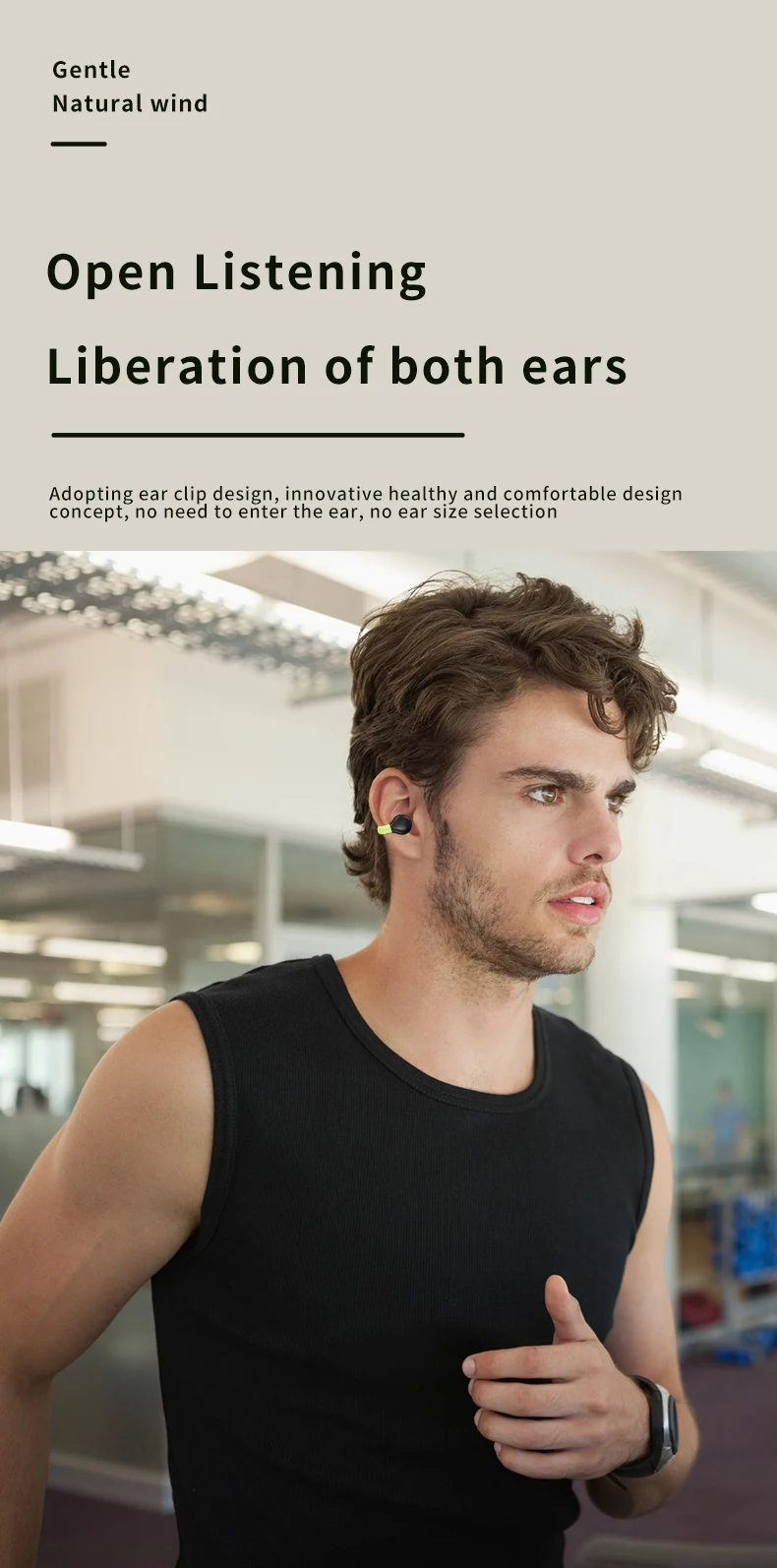 Auriculares inalámbricos con clip para la oreja AX10 no intrauditivos abiertos V5.3 binaurales OWS auriculares universales para deportes y fitness de espera súper largos