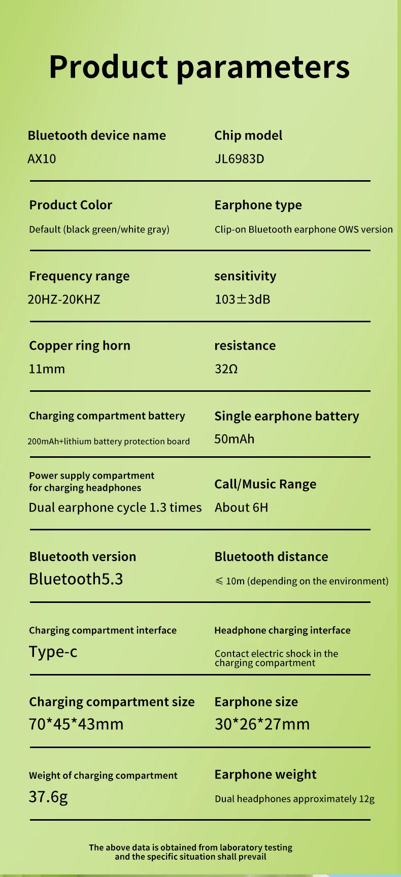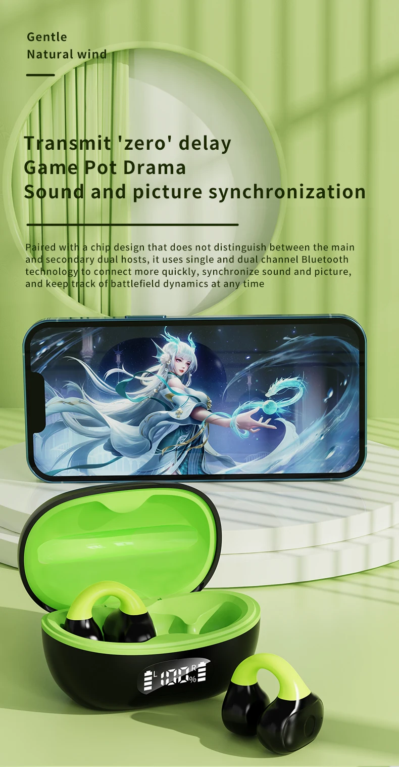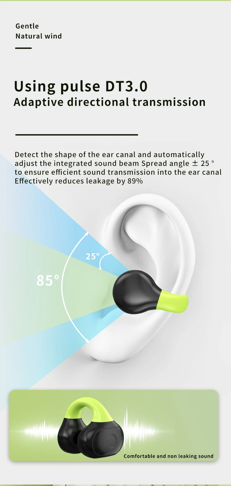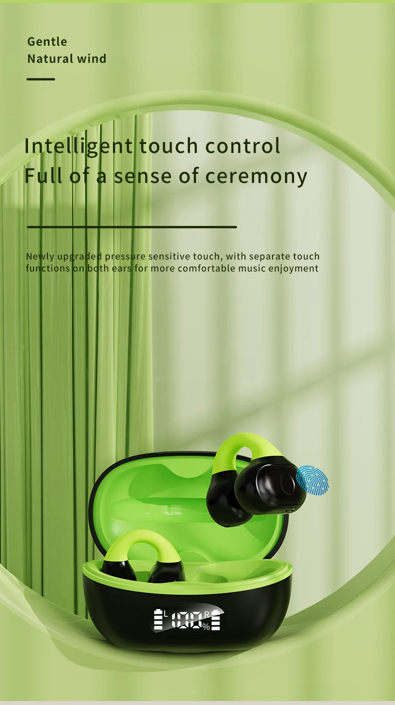 Auriculares inalámbricos con clip para la oreja AX10 no intrauditivos abiertos V5.3 binaurales OWS auriculares universales para deportes y fitness de espera súper largos