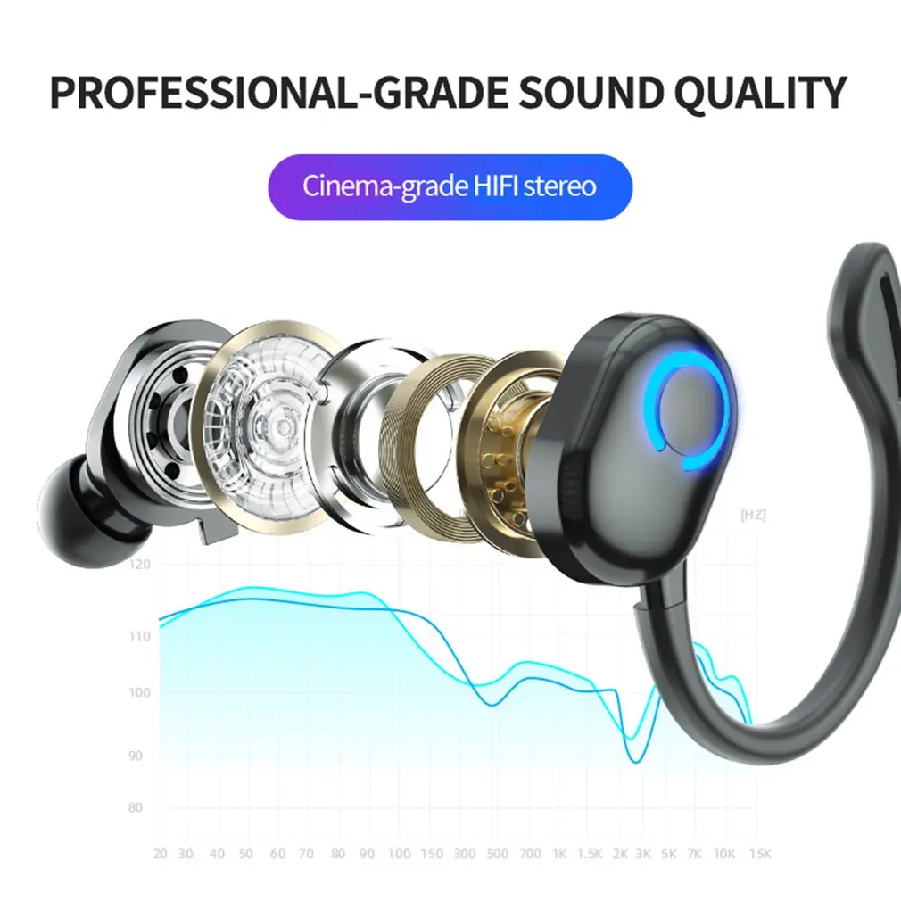 Comprar Auriculares inalámbricos compatibles con Bluetooth 5,2, audífonos de negocios con gancho para la oreja, cancelación de ruido de graves HIFI, audífonos deportivos para juegos