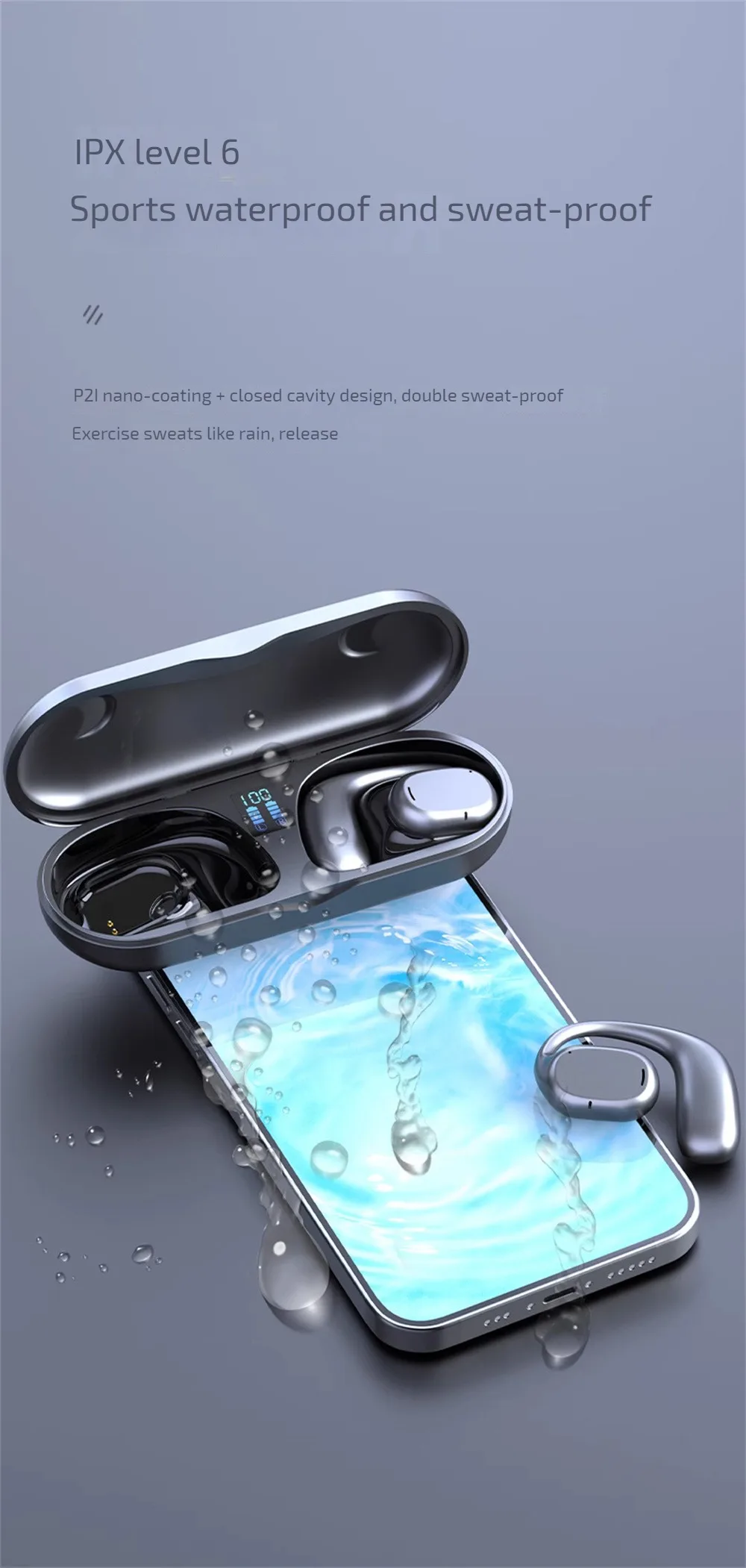 7. Nivel IPX6 a prueba de agua: impermeable y a prueba de sudor para deportes, usando P21 Nano-revestimiento + Diseño de cavidad cerrada, doble sudor deportivo a prueba de lluvia, y suéltelo a su corazón.