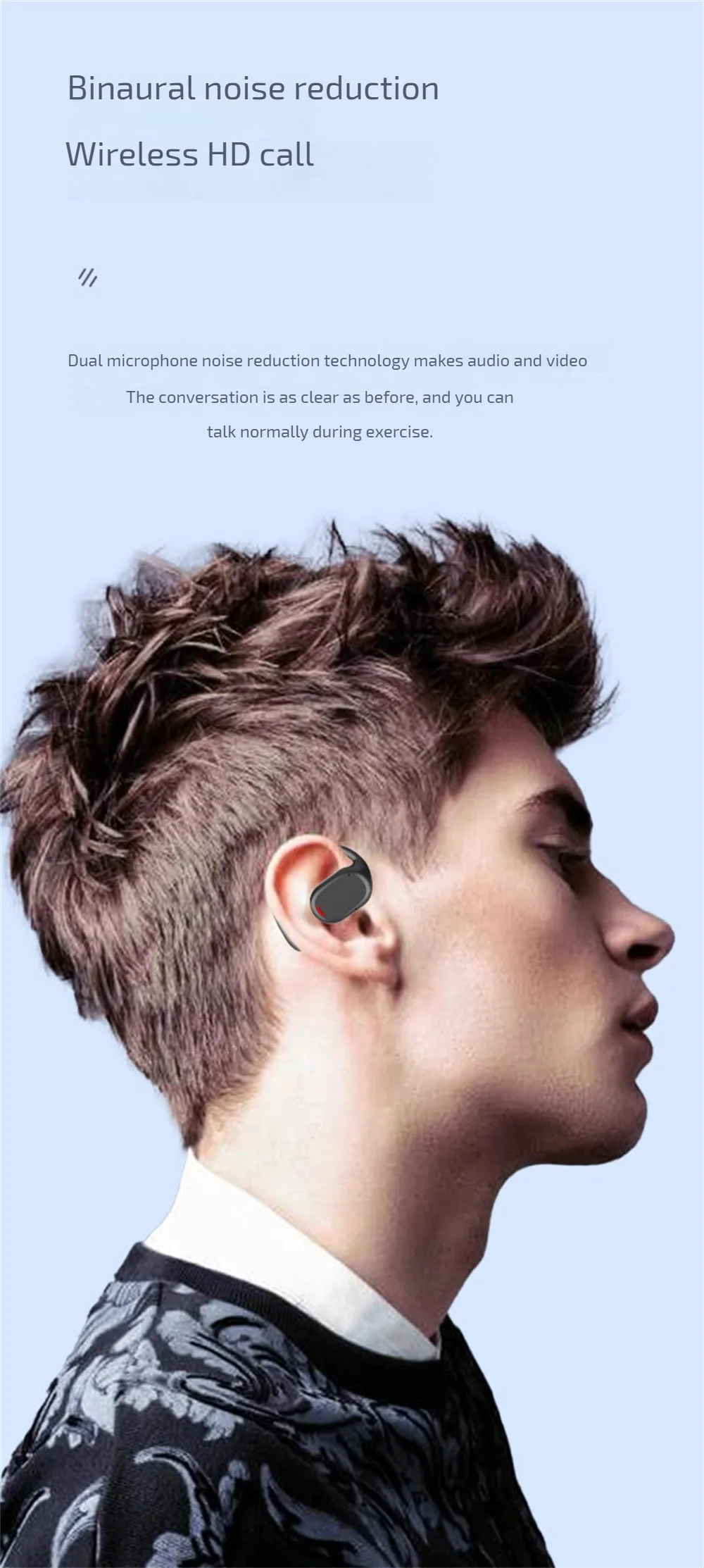 5. Reducción de ruido binaural: llamadas inalámbricas de alta definición, tecnología de reducción de ruido de doble micrófono, llamadas de audio y video tan claras como conversaciones cara a cara, Y también puede hablar normalmente durante los deportes.