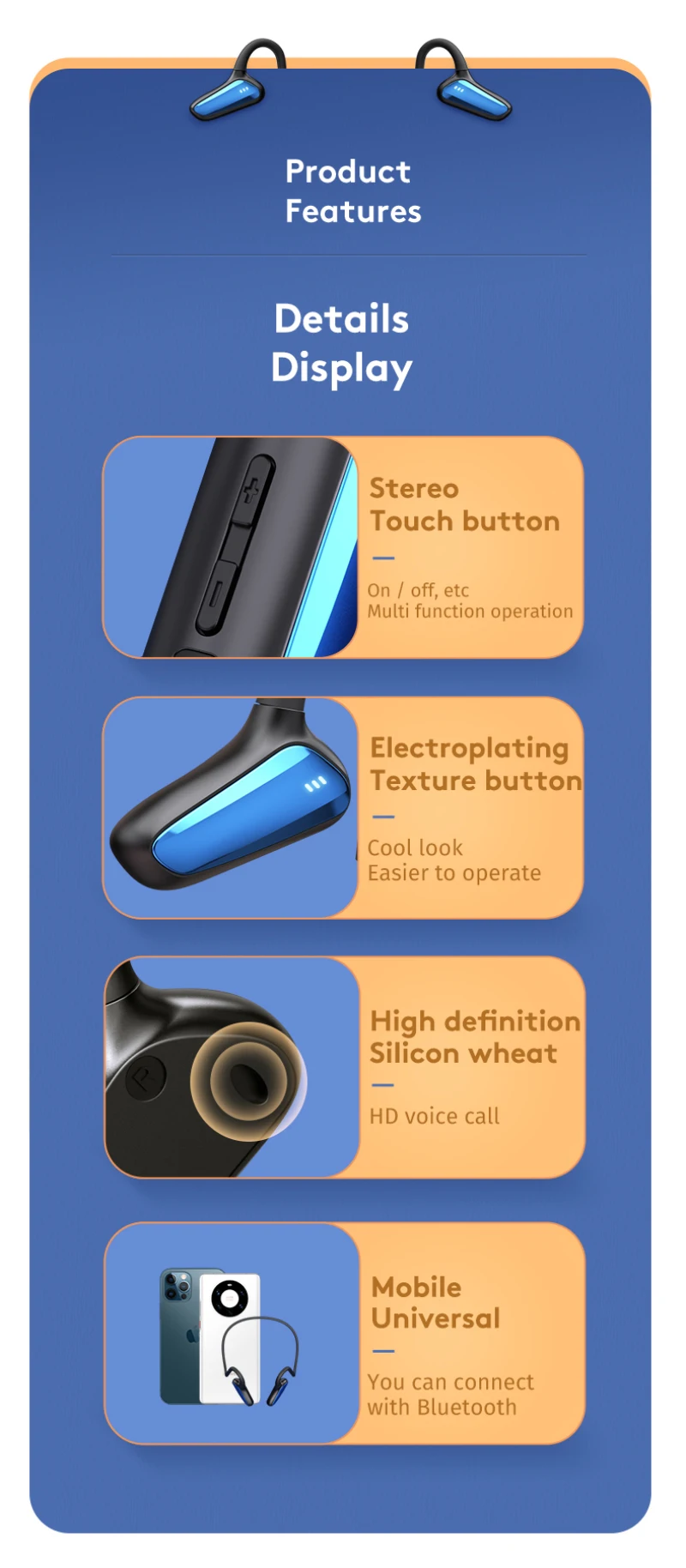 NOTA: ¡Este es un auricular de concepto de conducción ósea, no conducción ósea pura, un altavoz!