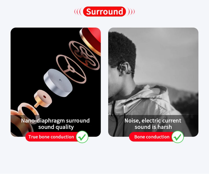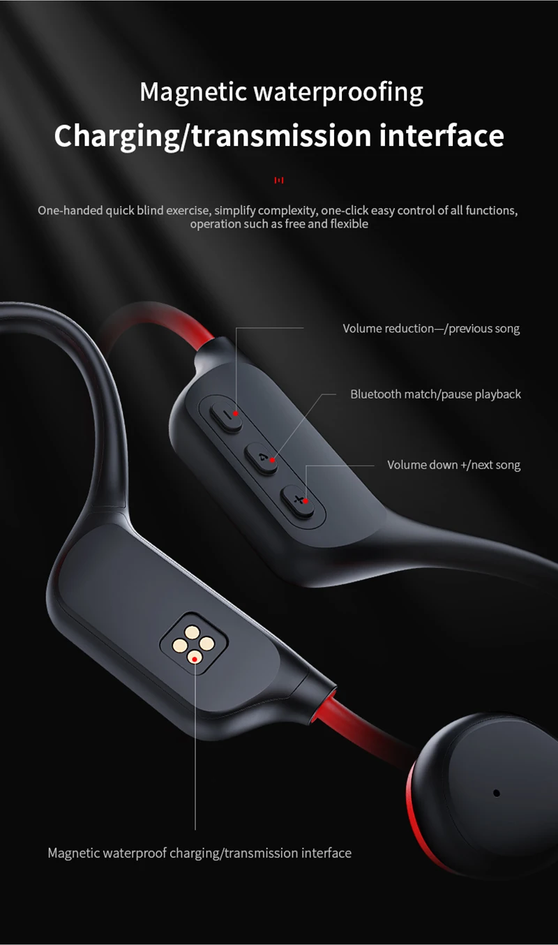 Auriculares de conducción ósea de nueva tecnología VAORLO para todos los Teléfonos/ordenadores/tabletas/TV, siempre que sea con Bluetooth.(IPX8 resistente al agua) Reproduce alrededor de 6-10 horas.