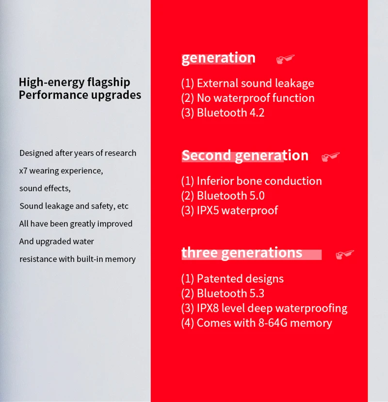 Comprar Auriculares inalámbricos de conducción ósea, cascos con memoria de 32G, gancho para la oreja, música Hifi, deporte, IPX8, impermeables, Bluetooth para natación