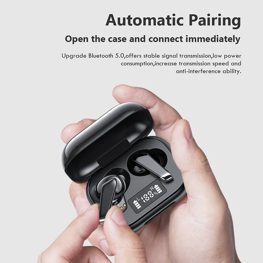 Paquete incluido: 2 auriculares Bluetooth. 1x estuche de carga. 1 cable USB. 1 manual de usuario.