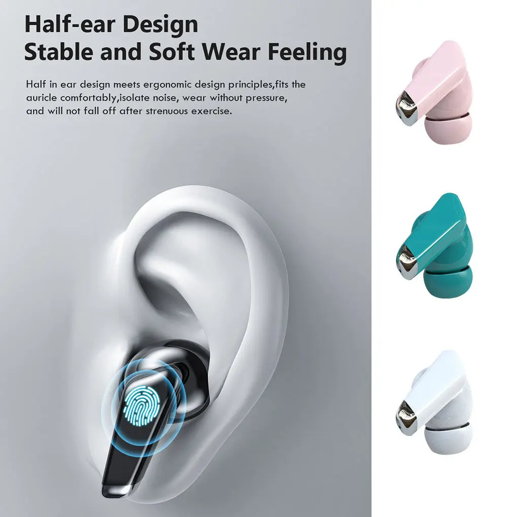 Descripción: Bluetooth V5.0, compatible con la mayoría de los dispositivos Bluetooth y reduce el consumo de energía. La caja de carga de 400mAh puede cargar completamente 2 pares de auriculares aproximadamente 4 veces, proporcionando más 24 horas de tiempo de reproducción de música. Utilizando tecnología impermeable, ya no tendrá que preocuparse por el agua y el sudor. Con unidad de accionamiento dual de 13mm, disfrute de la potente música de graves profundos 9D. Función táctil popular, soporte para cambiar canciones, llamar y llamar al asistente de voz.