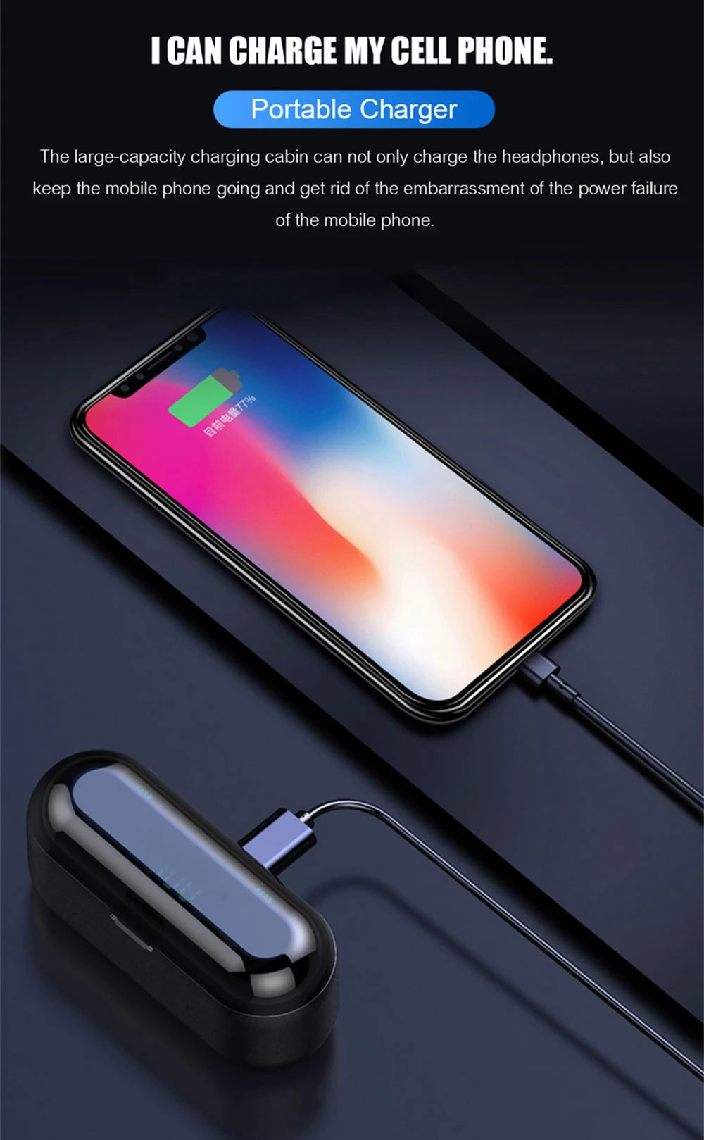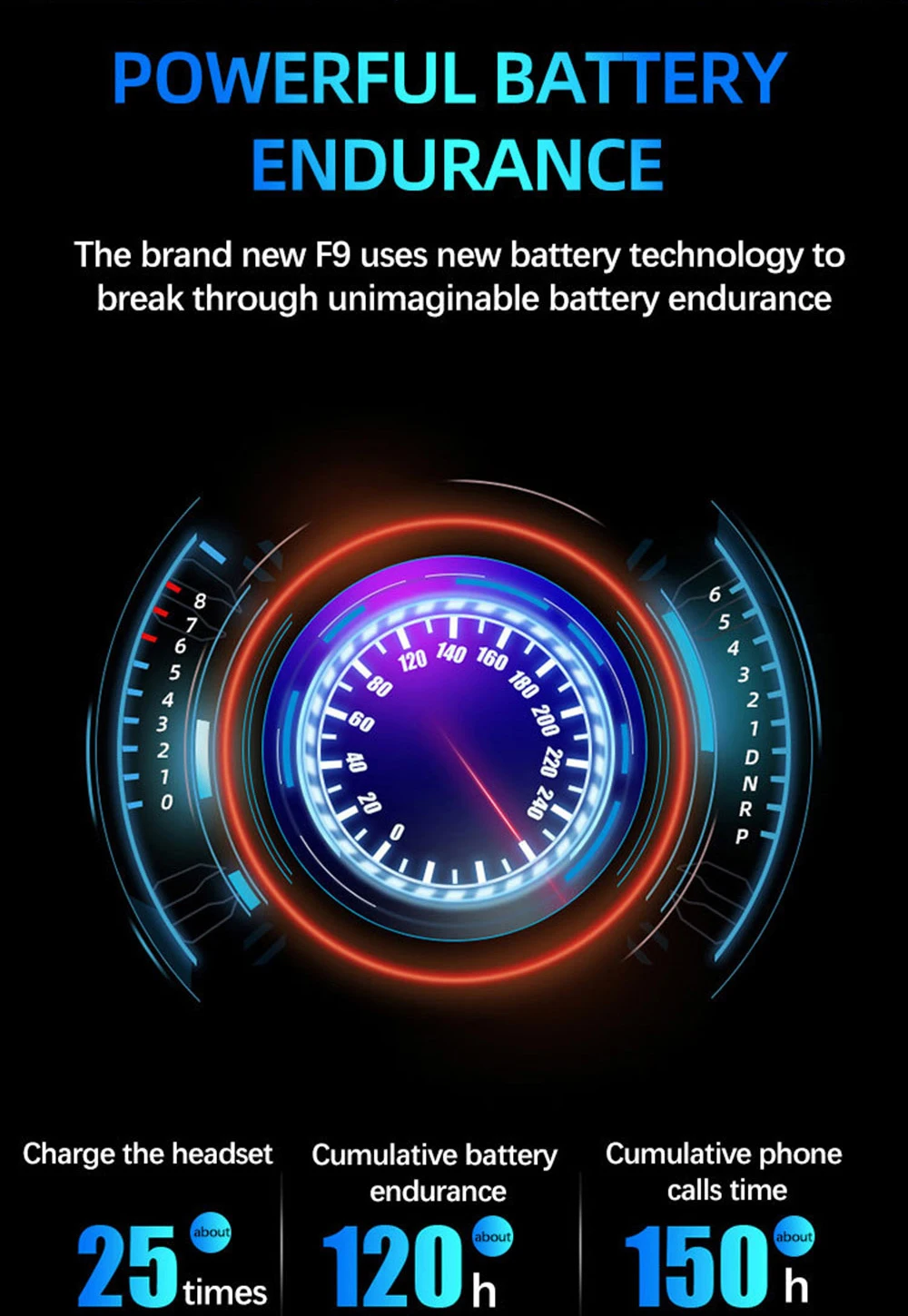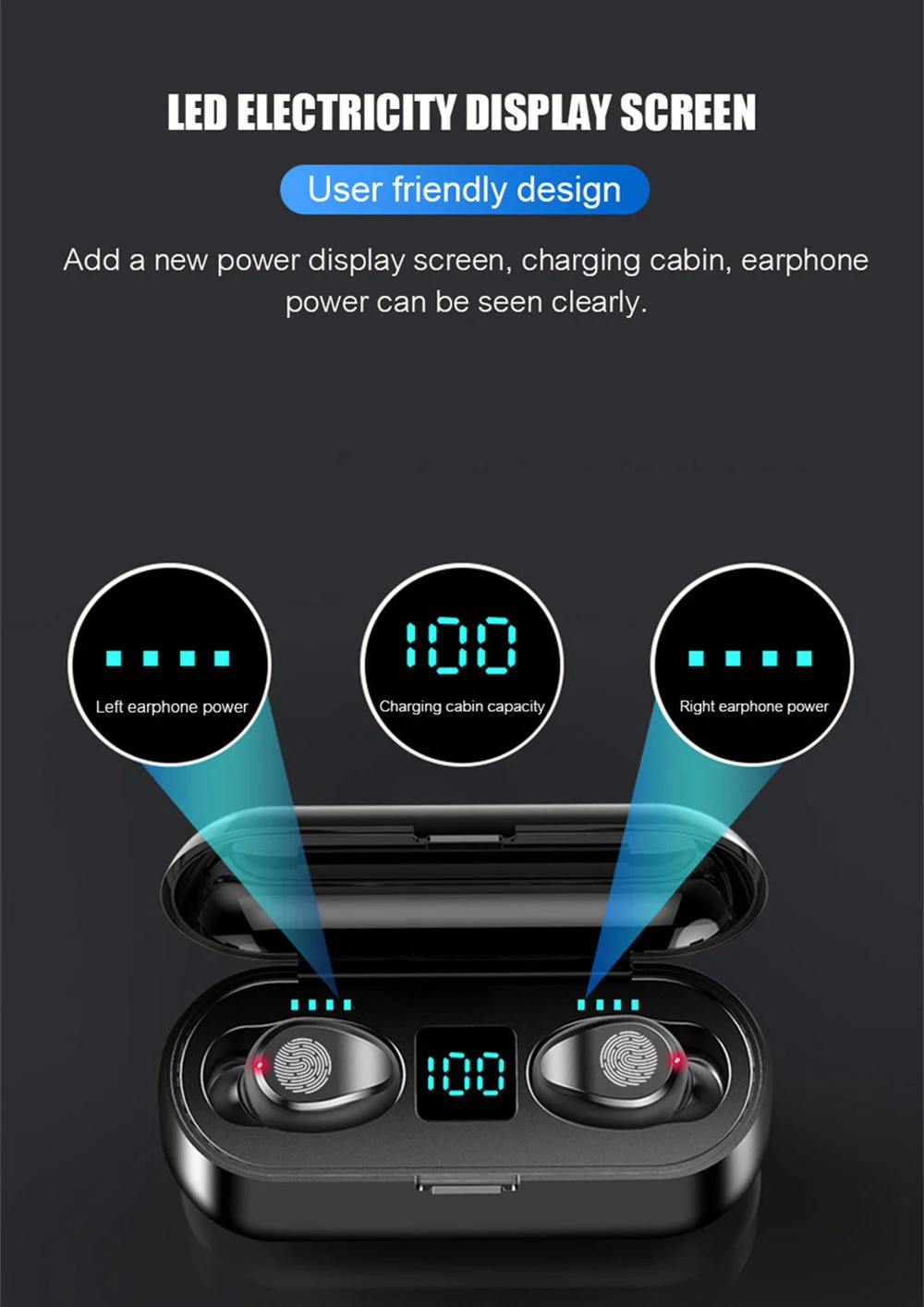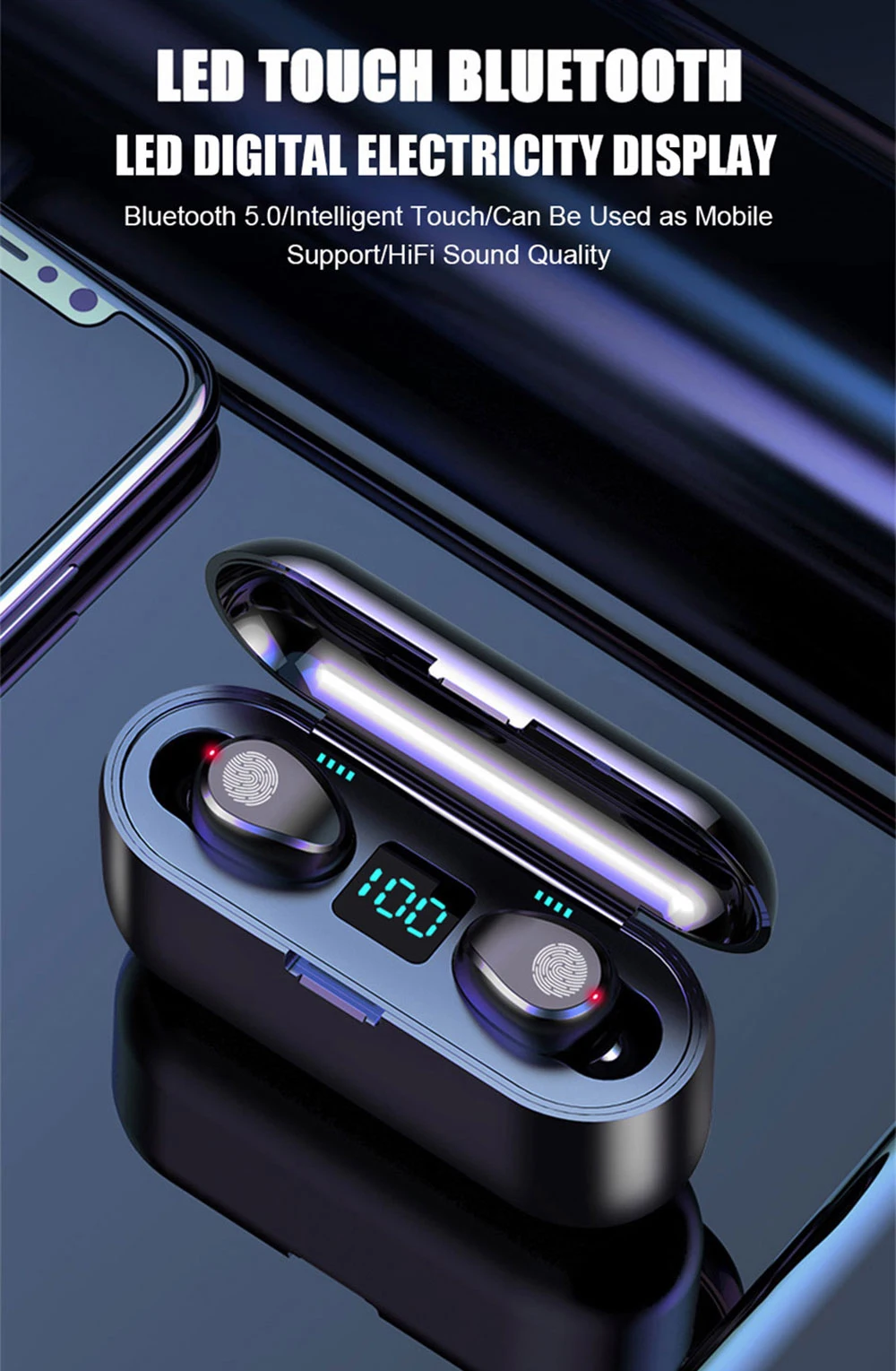 Comprar Auriculares inalámbricos F9 TWS con LED, cascos Táctiles con Bluetooth, estéreo, cancelación de ruido, con estuche de carga de 2000mAh, fuente de alimentación móvil, novedad