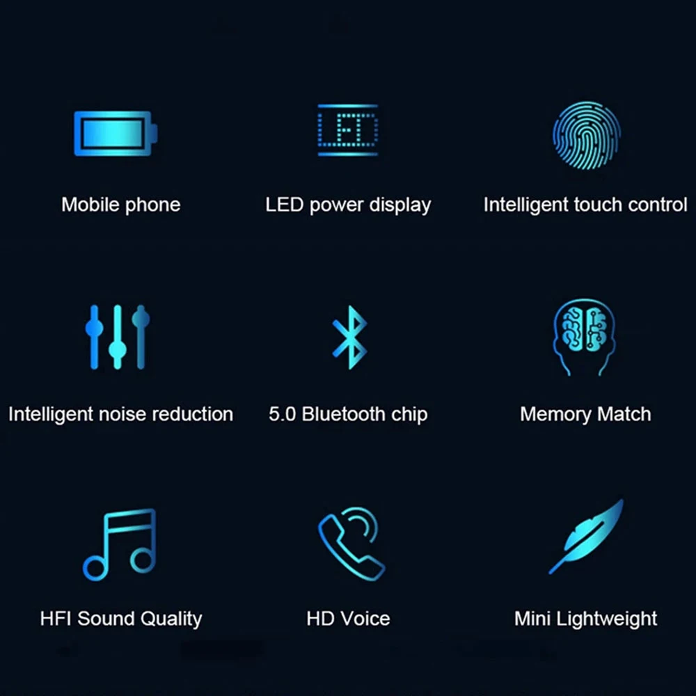 Características del producto:1. Bluetooth V5.0, compatible con la mayoría de los dispositivos Bluetooth y menor consumo de energía2. El ESTUCHE DE CARGA DE 2000mAh puede cargar completamente 2 auriculares alrededor de 10 veces, ofreciendo más tiempo de música.3. Con tecnología impermeable, ya no hay necesidad de preocuparse por el agua y el sudor4. Unidades de doble Unidad de 8MMS, disfruta de un fuerte sonido de música de graves profundos 9D5. Función de control popular de un botón, admite cambiar canciones, llamada telefónica y asistente de voz de llamada.Listas de paquetes:2 * Auriculares Bluetooth1 estuche de carga1 * Cable USB1 * Manual de usuario2 * tazas para auriculares (tamaño L,M)