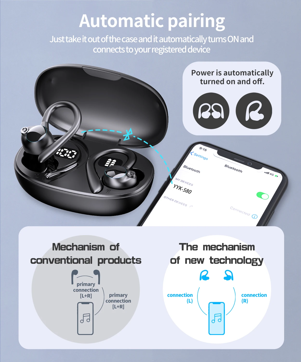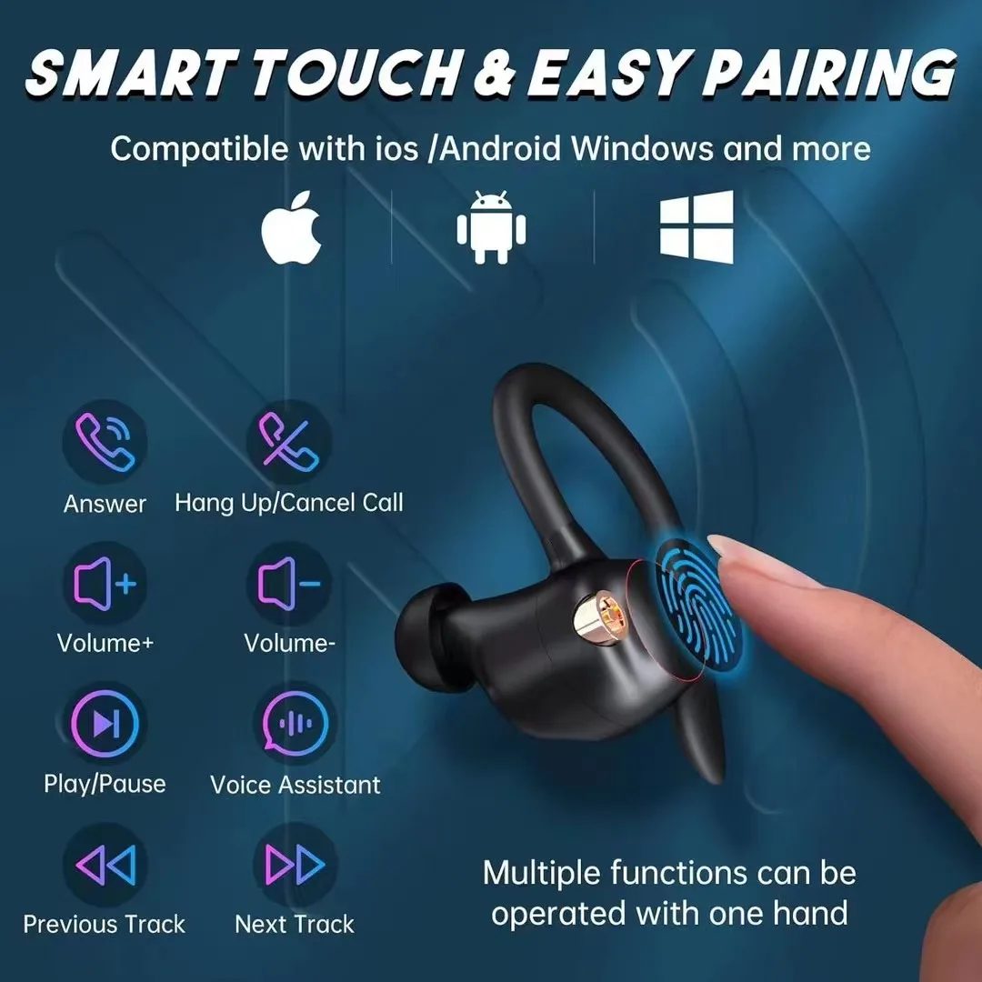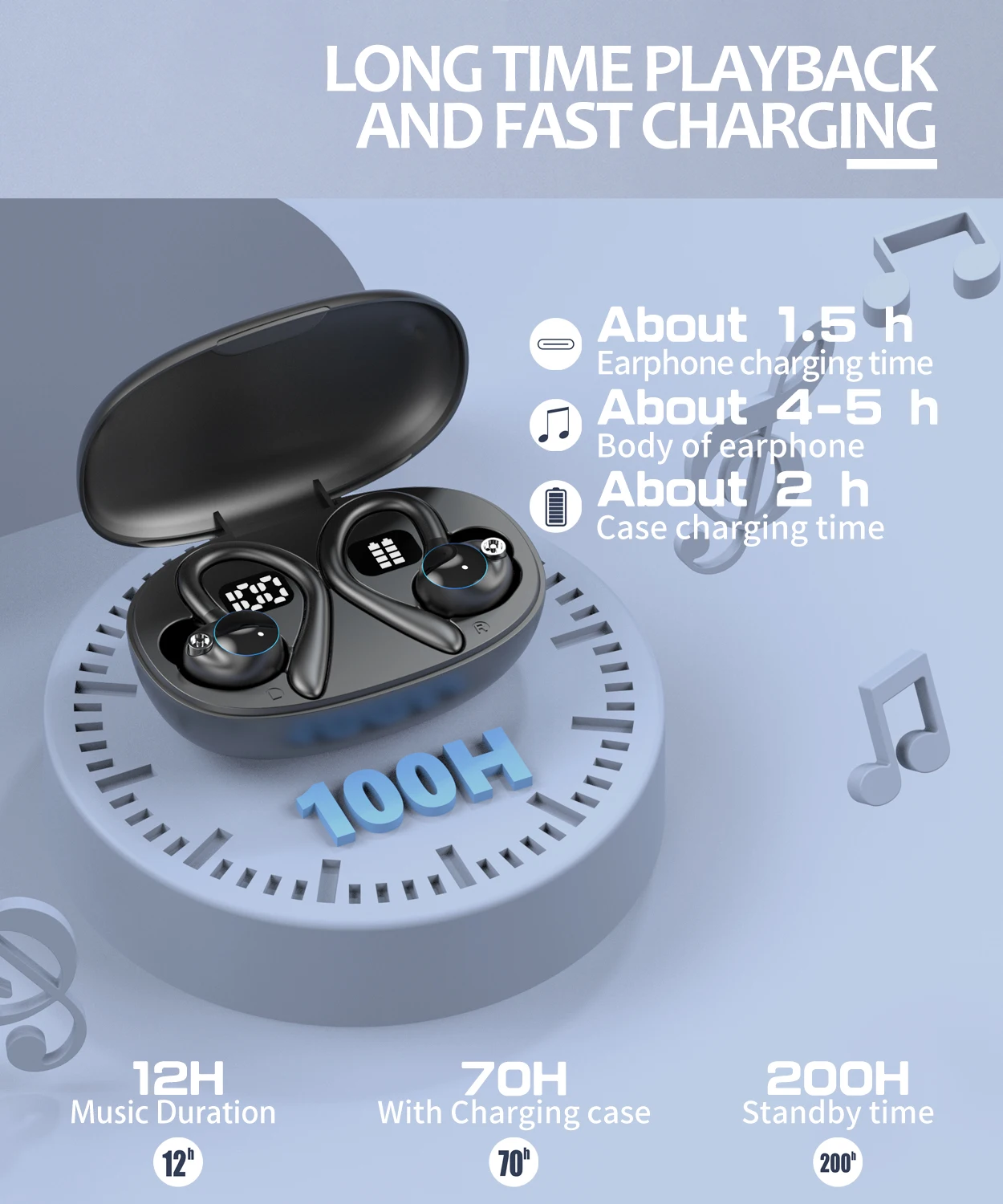 Comprar Auriculares inalámbricos con gancho para la oreja, audífonos deportivos con Bluetooth 5,3, HD, resistentes al agua IPX7, con micrófono y cancelación de ruido