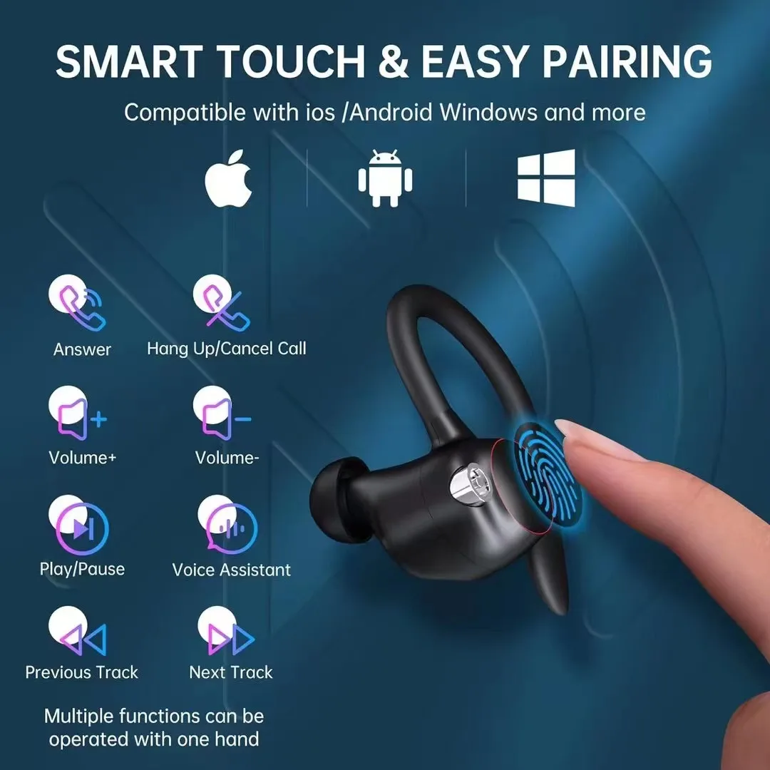 Comprar Auriculares inalámbricos con gancho para la oreja, audífonos deportivos con Bluetooth 5,3, HD, resistentes al agua IPX7, con micrófono y cancelación de ruido