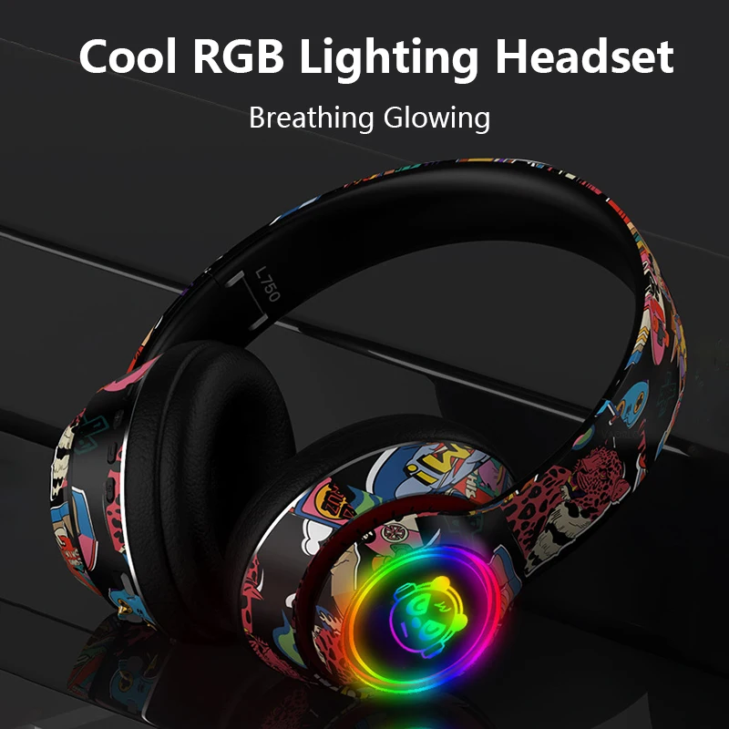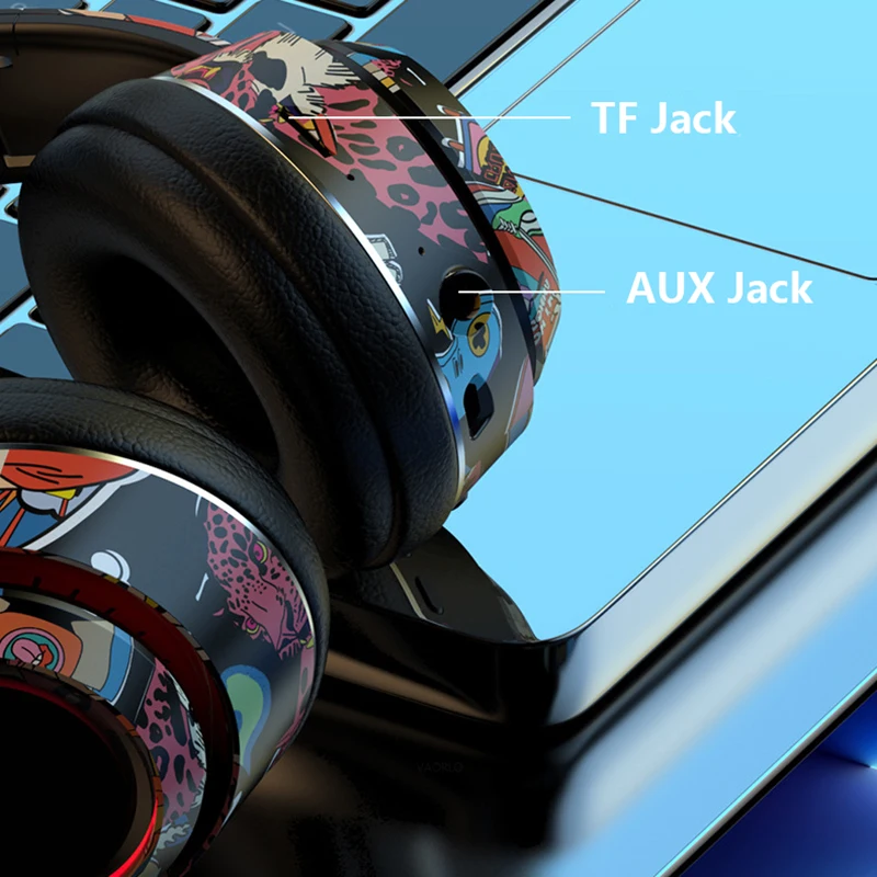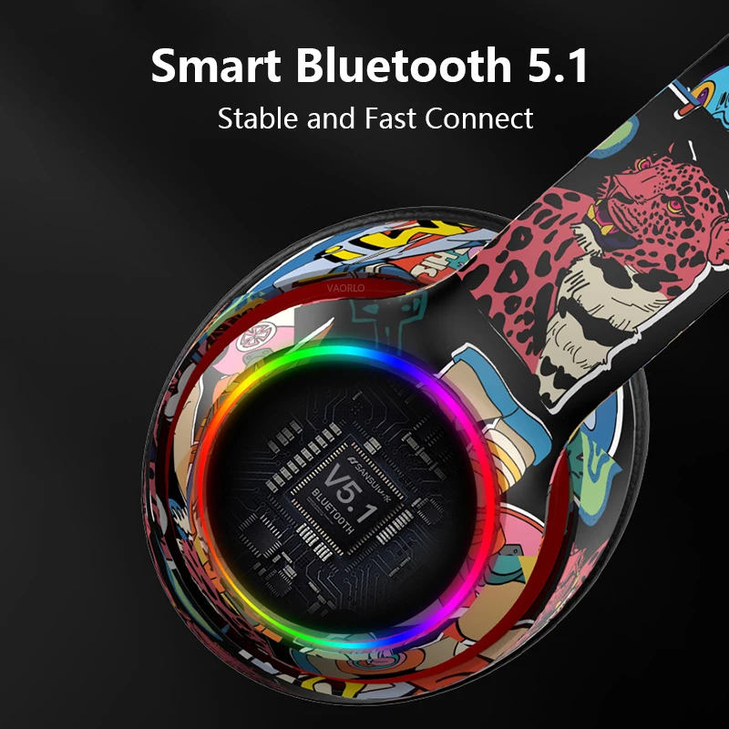 Comprar Auriculares inalámbricos con Graffiti, cascos deportivos con Bluetooth 5,1, HIFI, BT/tarjeta TF/FM/AUX, con cable
