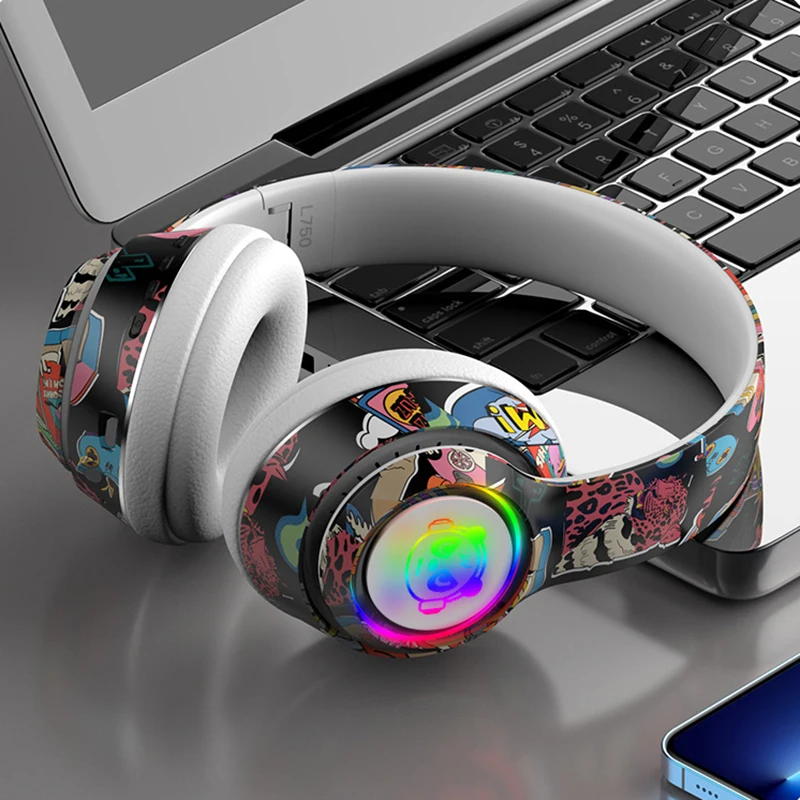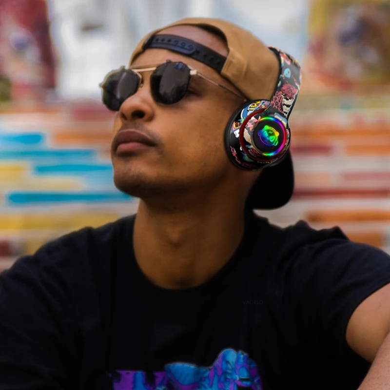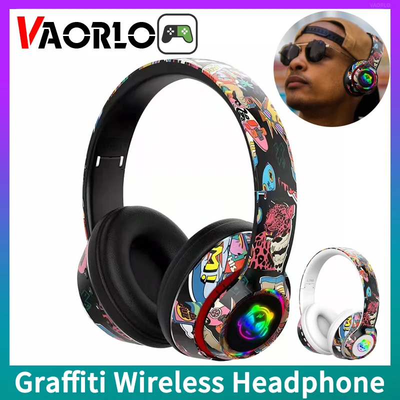 Comprar Auriculares inalámbricos con Graffiti, cascos deportivos con Bluetooth 5,1, HIFI, BT/tarjeta TF/FM/AUX, con cable