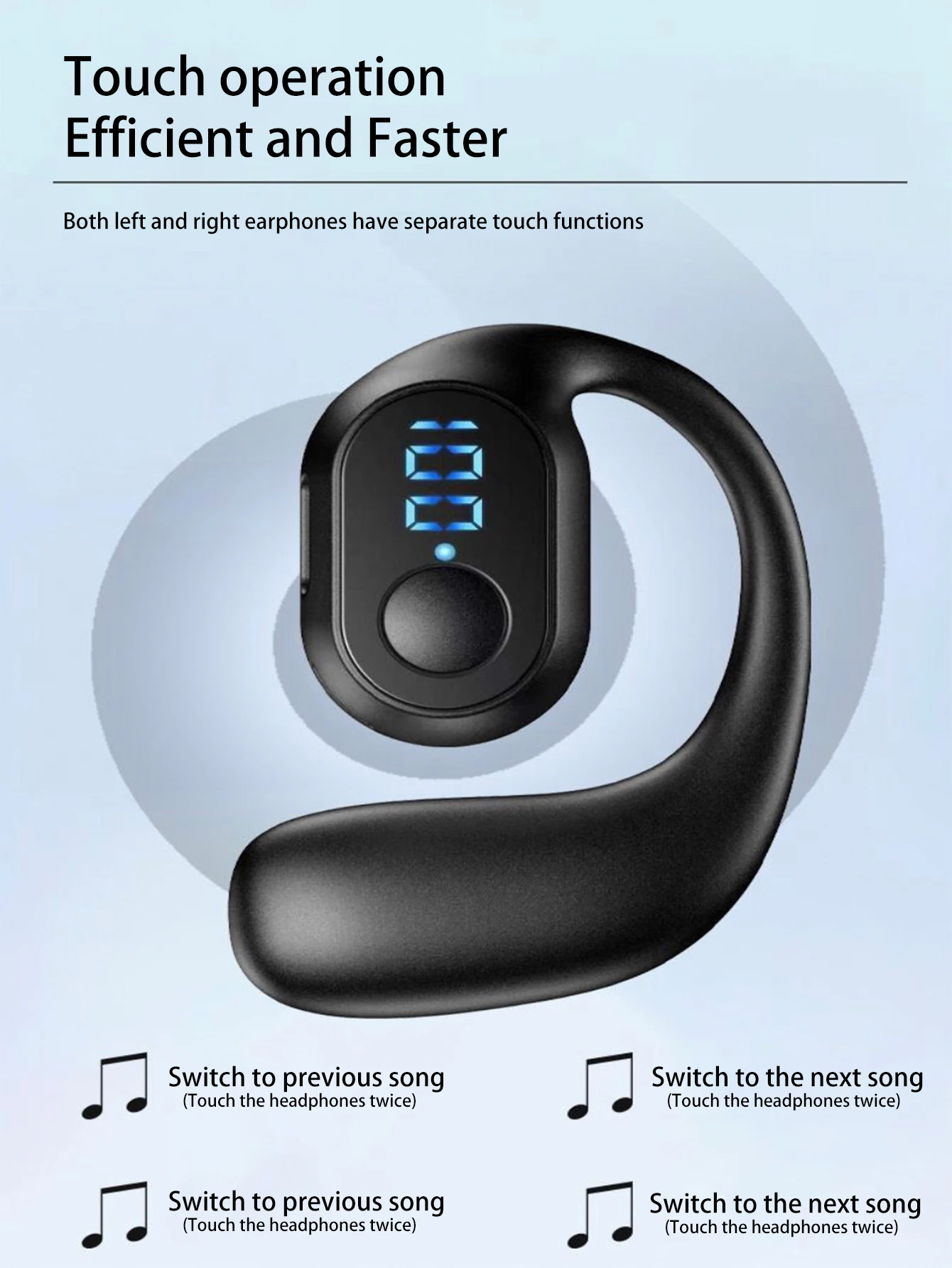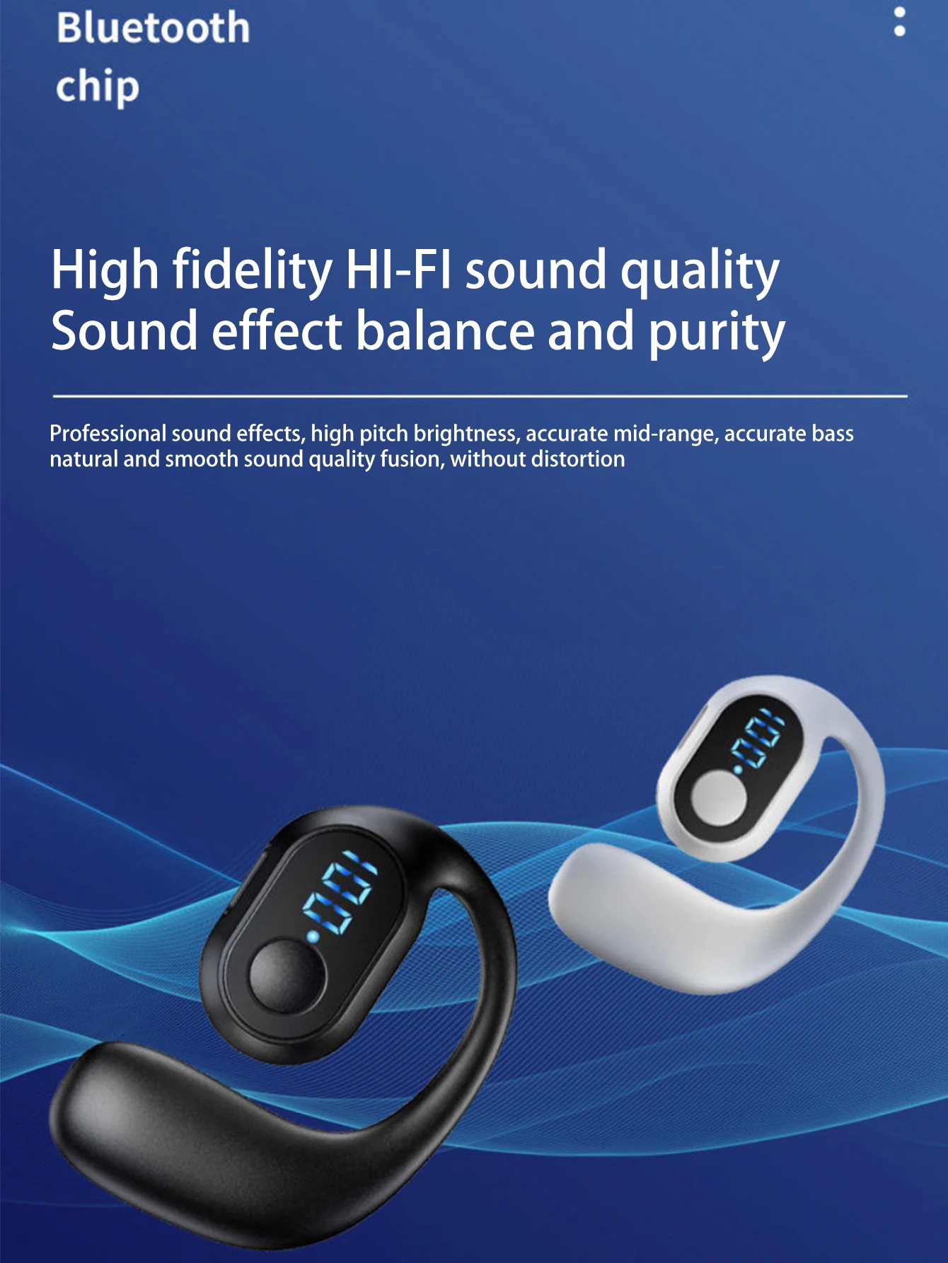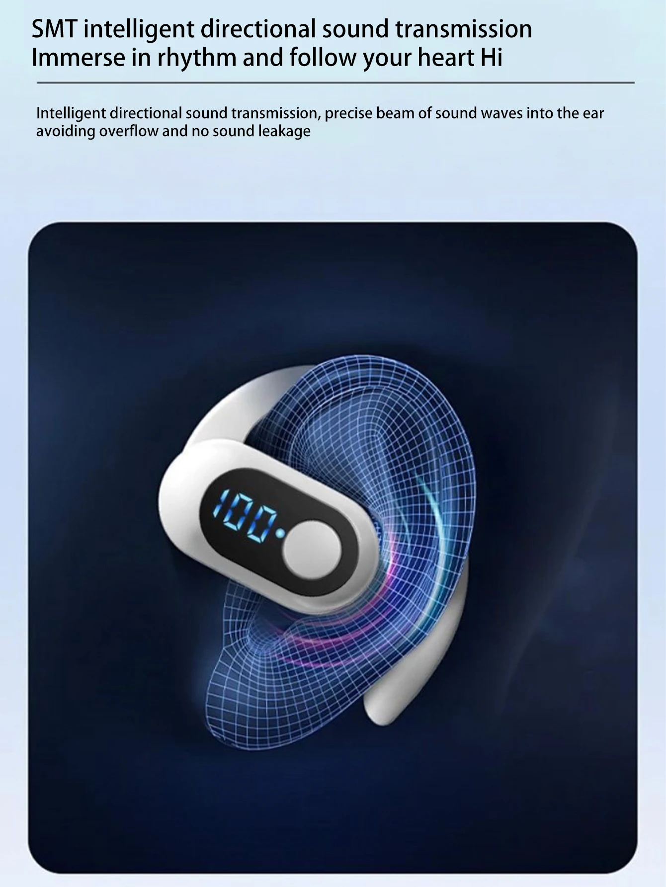 Auriculares inalámbricos intrauditivos, audífonos deportivos con pantalla digital monoaural, cancelación de ruido, batería de larga duración