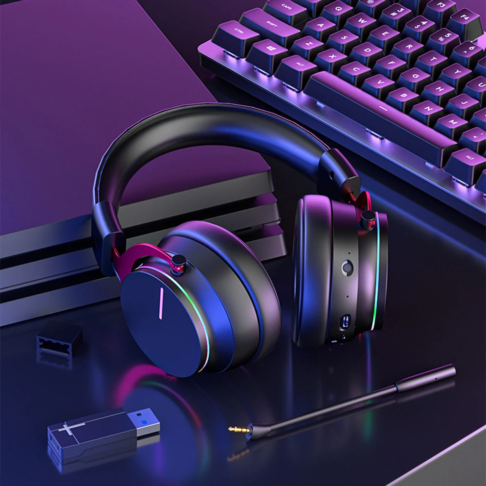 Comprar Auriculares inalámbricos para juegos, cascos con micrófono transmisor, estéreo de graves, 5,8G, reducción de ruido y Sonido Envolvente