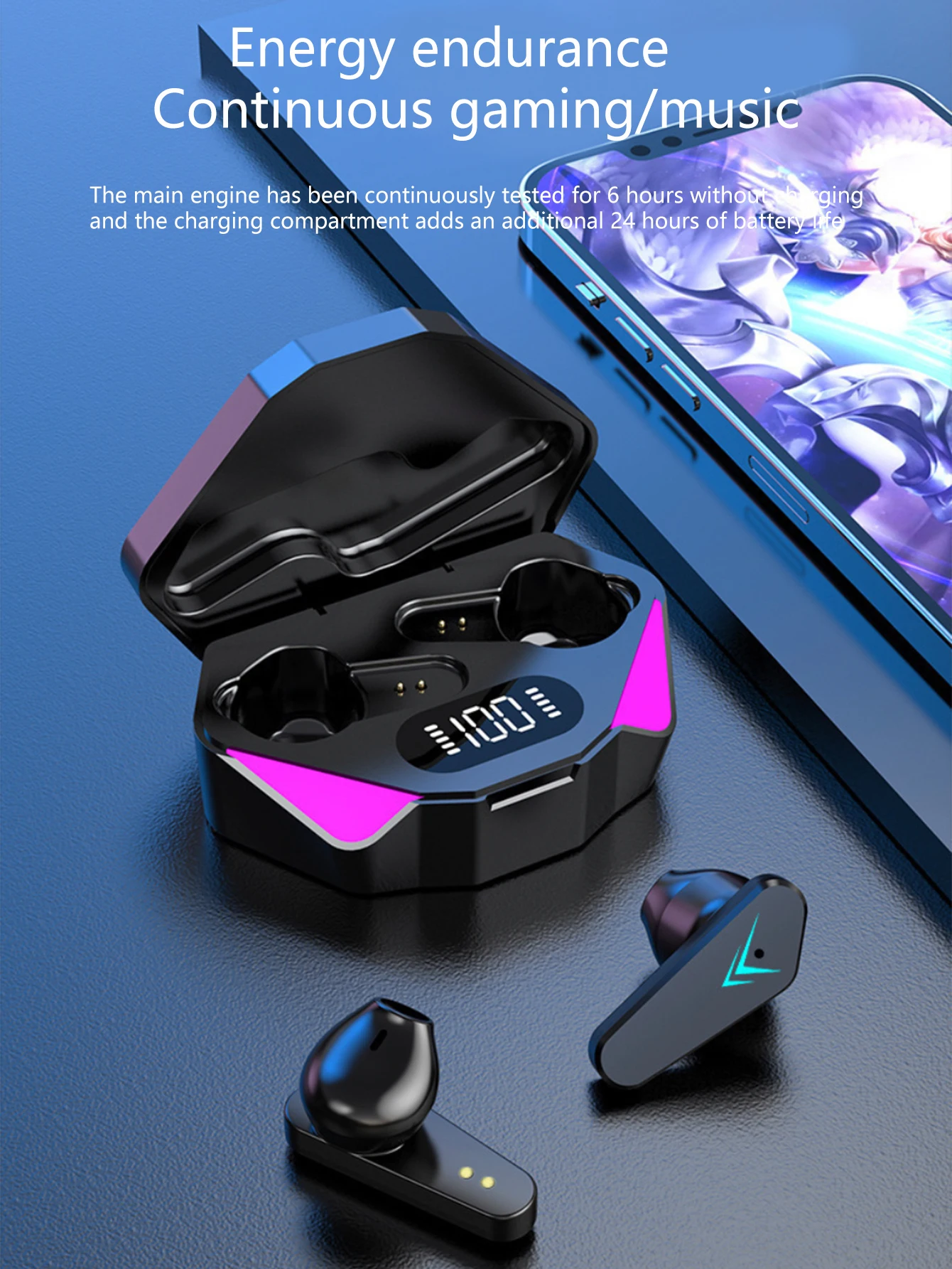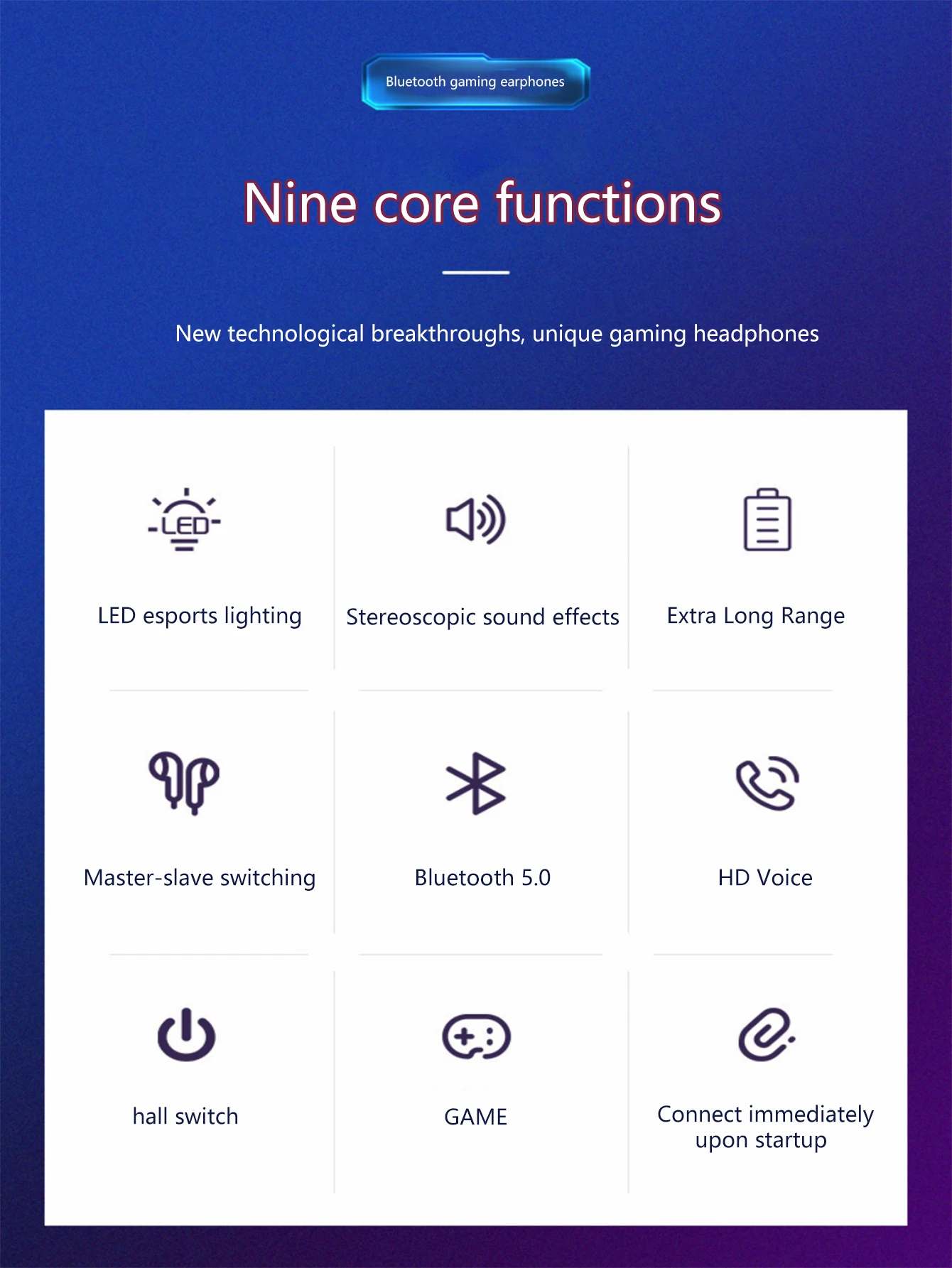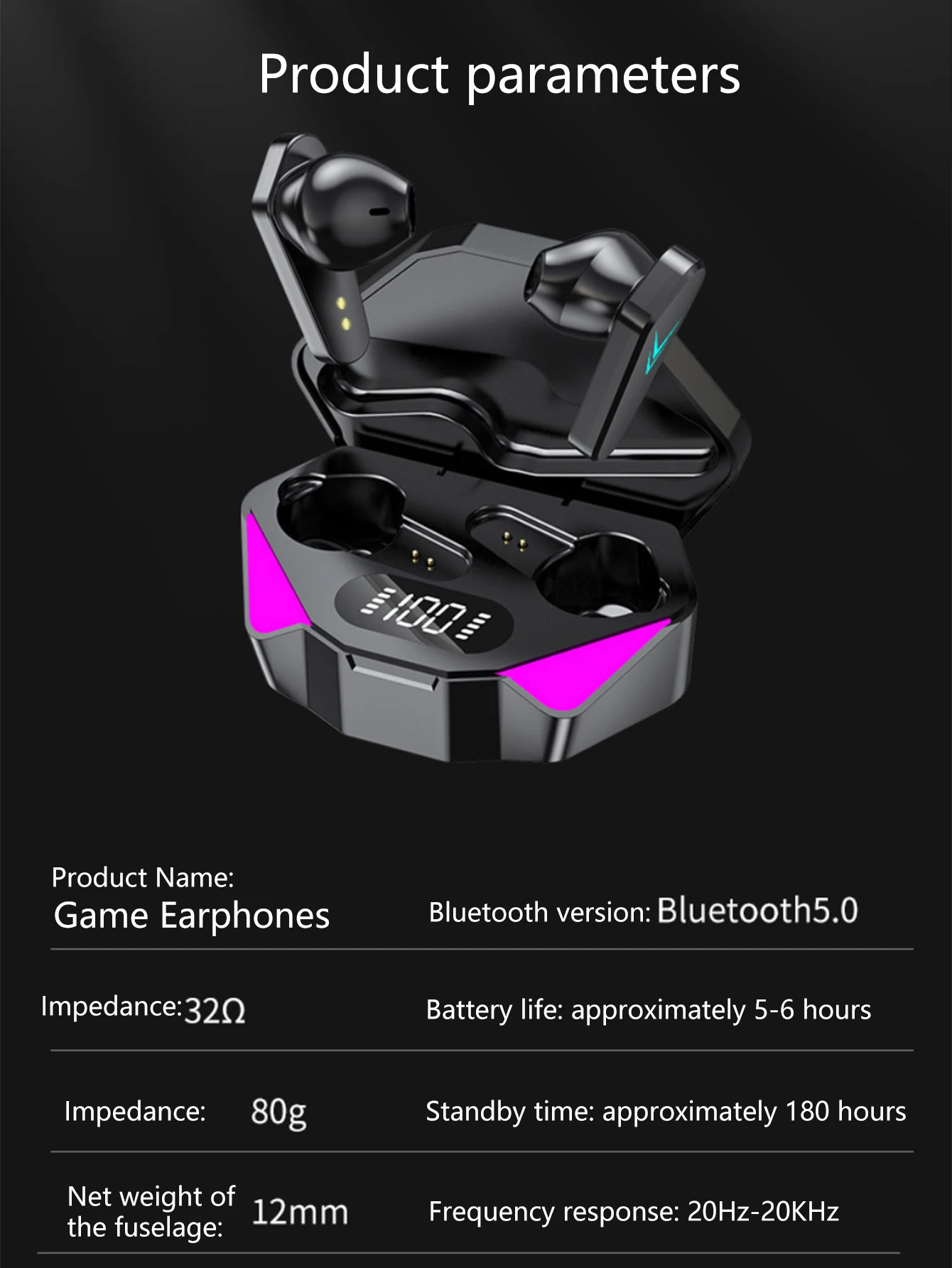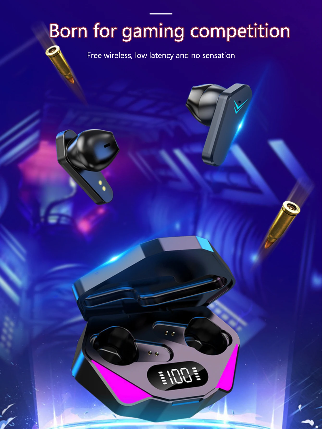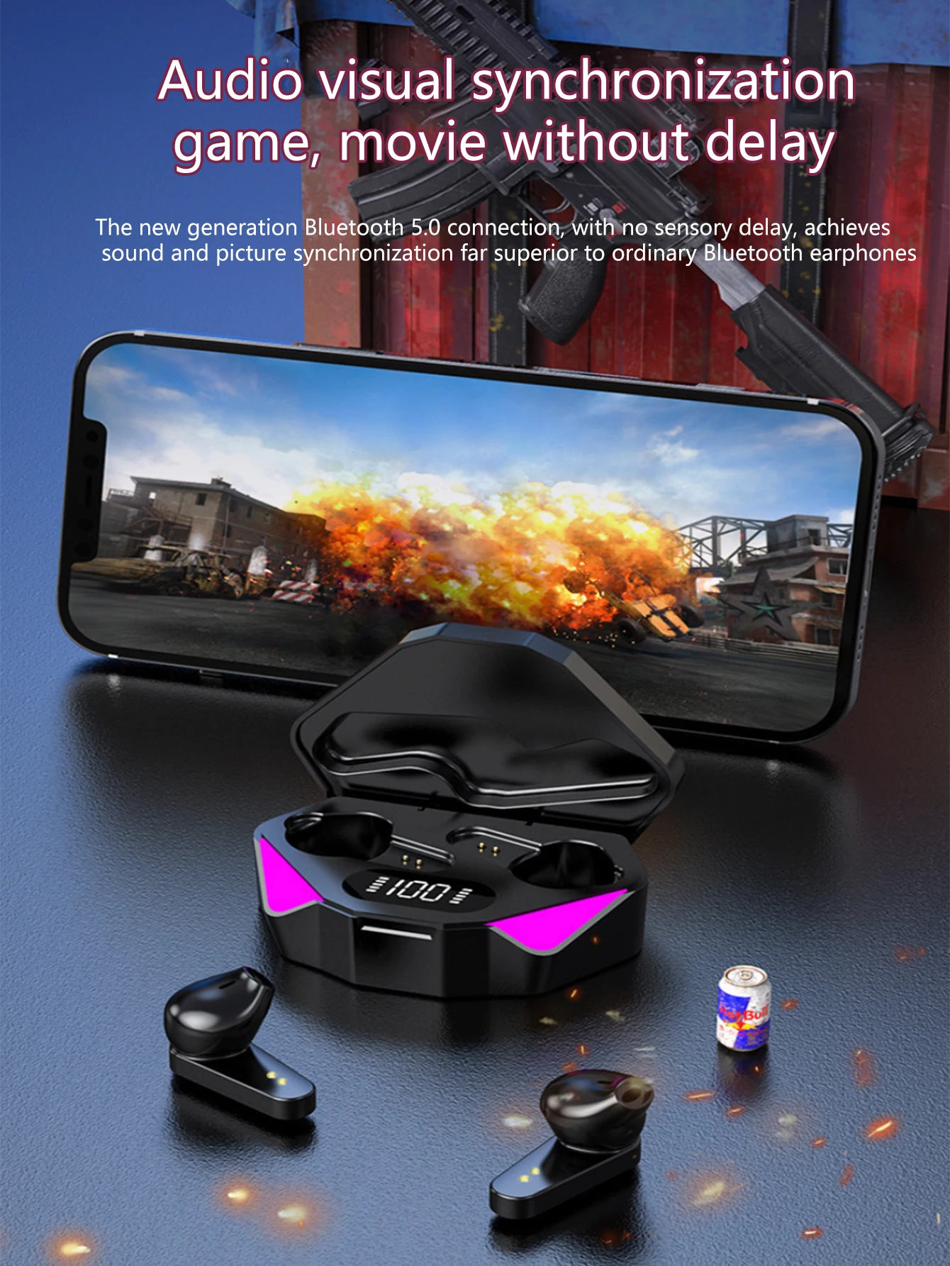 Auriculares inalámbricos para juegos de deportes electrónicos, iluminación fresca, efectos de sonido estéreo, auriculares intrauditivos Bluetooth con retardo perfecto