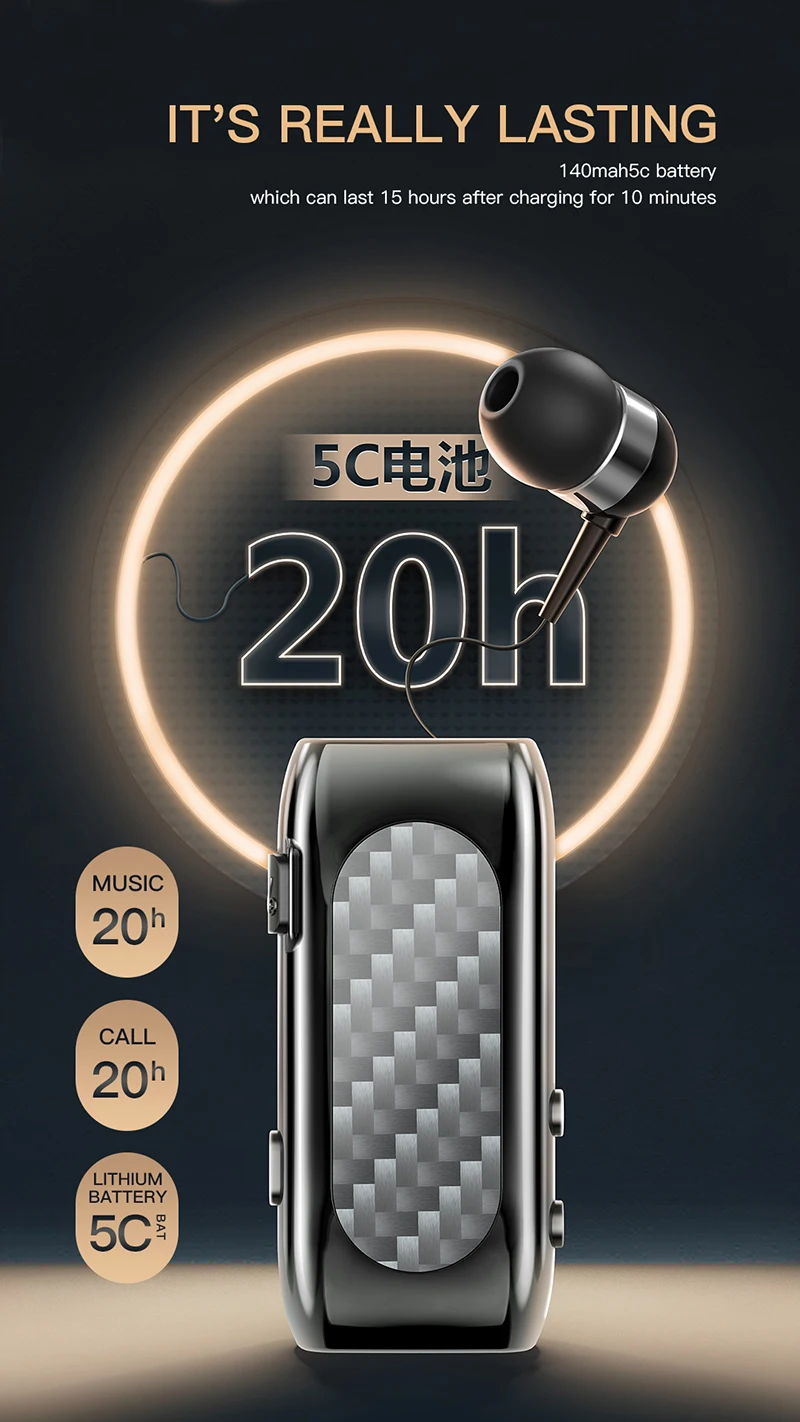 Comprar Auriculares inalámbricos K56 de fibra de carbono para negocios, audífonos con Bluetooth 5,2, auricular retráctil de un botón para hablar y música, 20 horas de autonomía