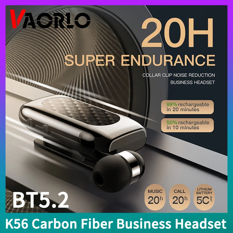 Comprar Auriculares inalámbricos K56 de fibra de carbono para negocios, audífonos con Bluetooth 5,2, auricular retráctil de un botón para hablar y música, 20 horas de autonomía