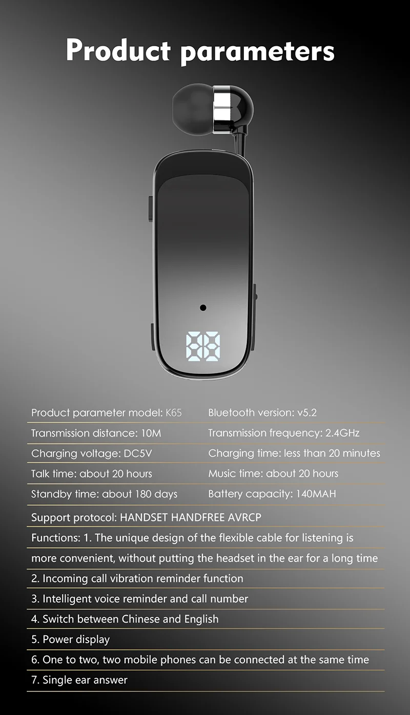 1x auricular Bluetooth de negocios K65