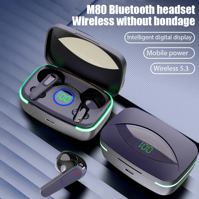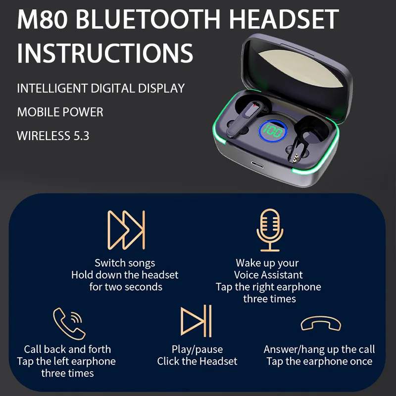 Auriculares TWS M80 Bluetooth 5,3, auriculares inalámbricos con Control táctil, auriculares para juegos, sonido estéreo HIFI, reducción de ruido con micrófono