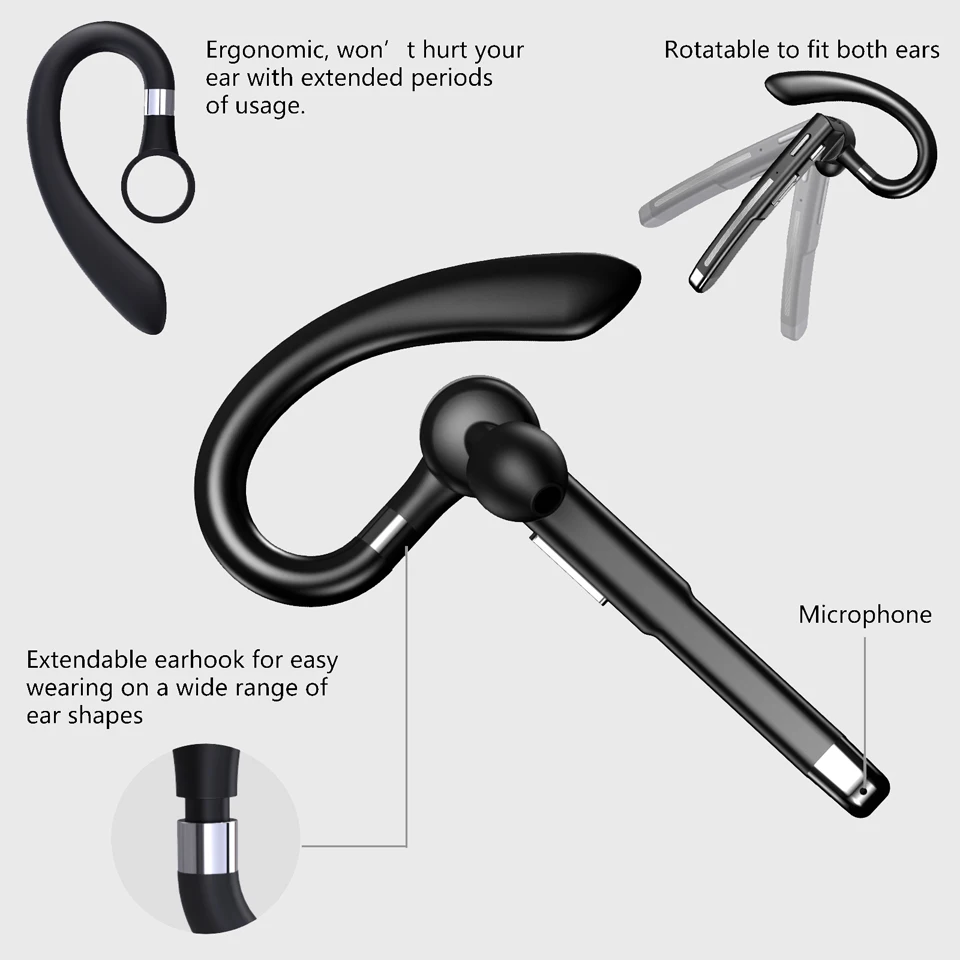 ♬ Se pueden usar tanto la oreja izquierda como la derecha:Diseño de auricular giratorio de 360 grados, tanto las orejas izquierda como la derecha se pueden usar cómodamente.