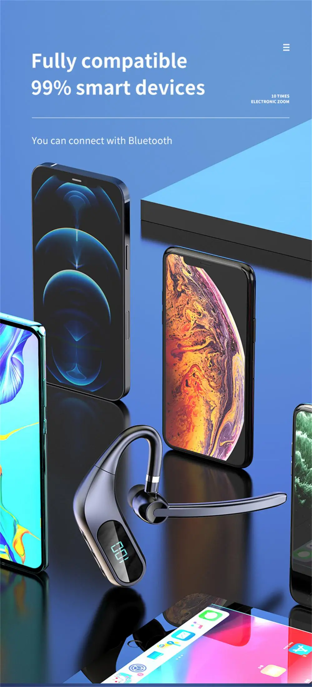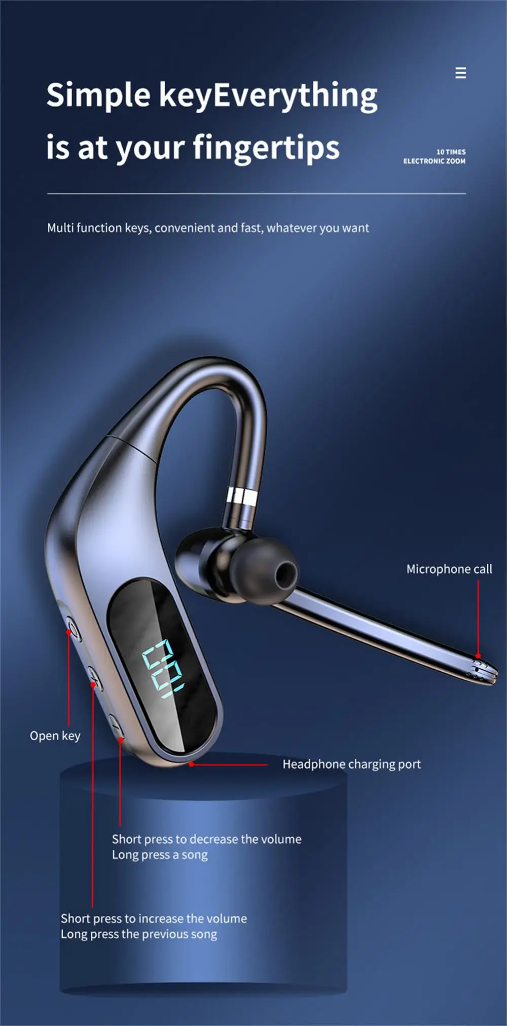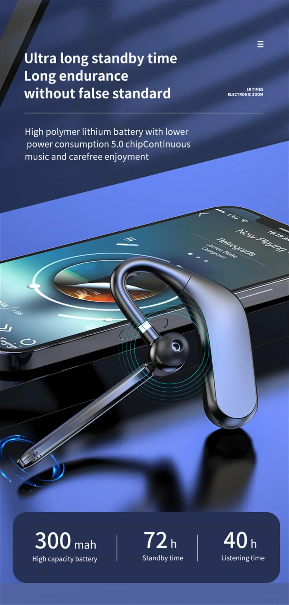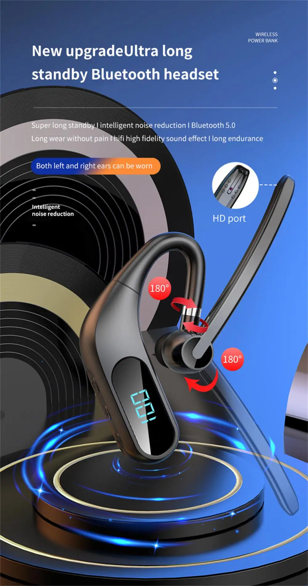 Comprar Auriculares inalámbricos con micrófono para negocios, audífonos con gancho creativo para llamadas Hd, cancelación de ruido, modo de espera largo, Kj12