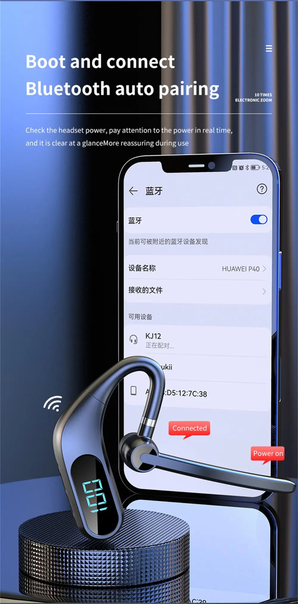 Auricular de negocios con micrófono Llamada en alta definición Gancho creativo Cancelación de ruido Auriculares de larga espera Auriculares inalámbricos Kj12