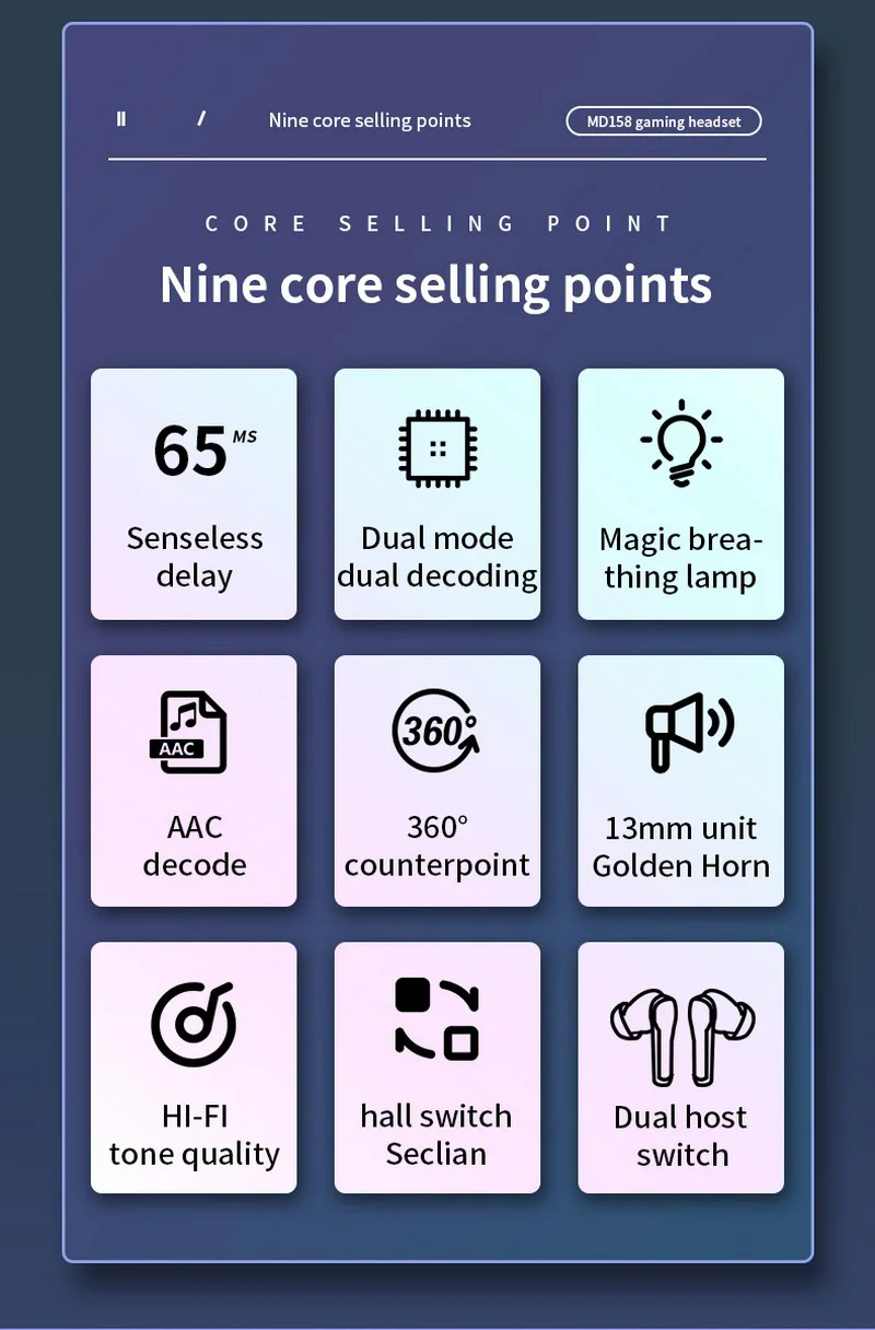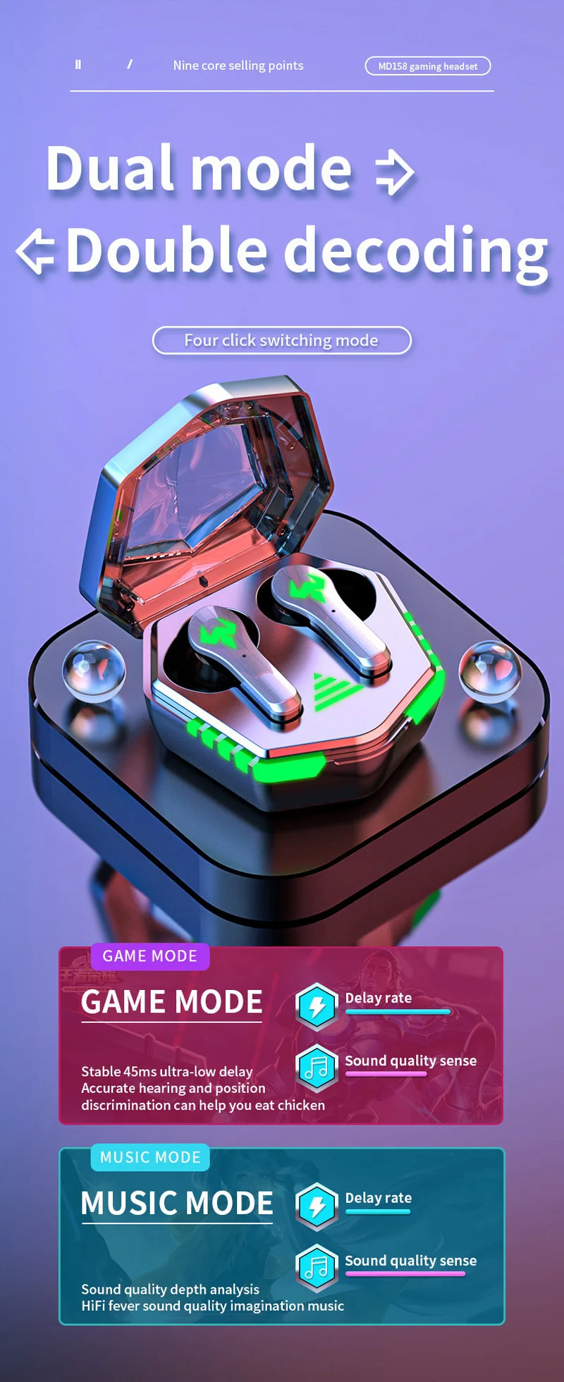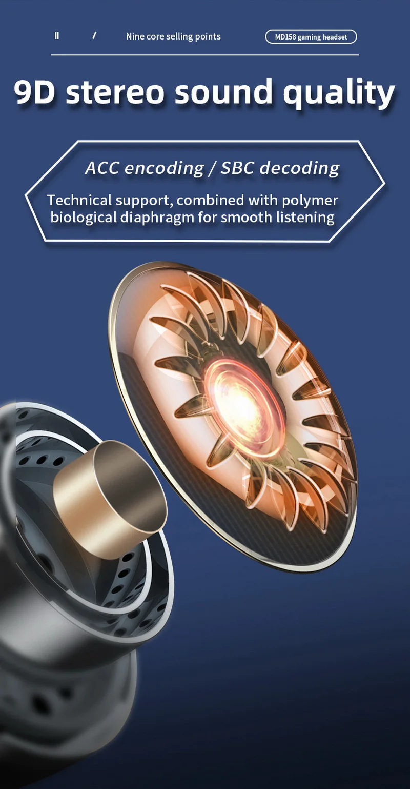 1. Sonido envolvente 9D y decodificación de modo dual, el auricular puede brindarle una experiencia emocionante de juego y uso.