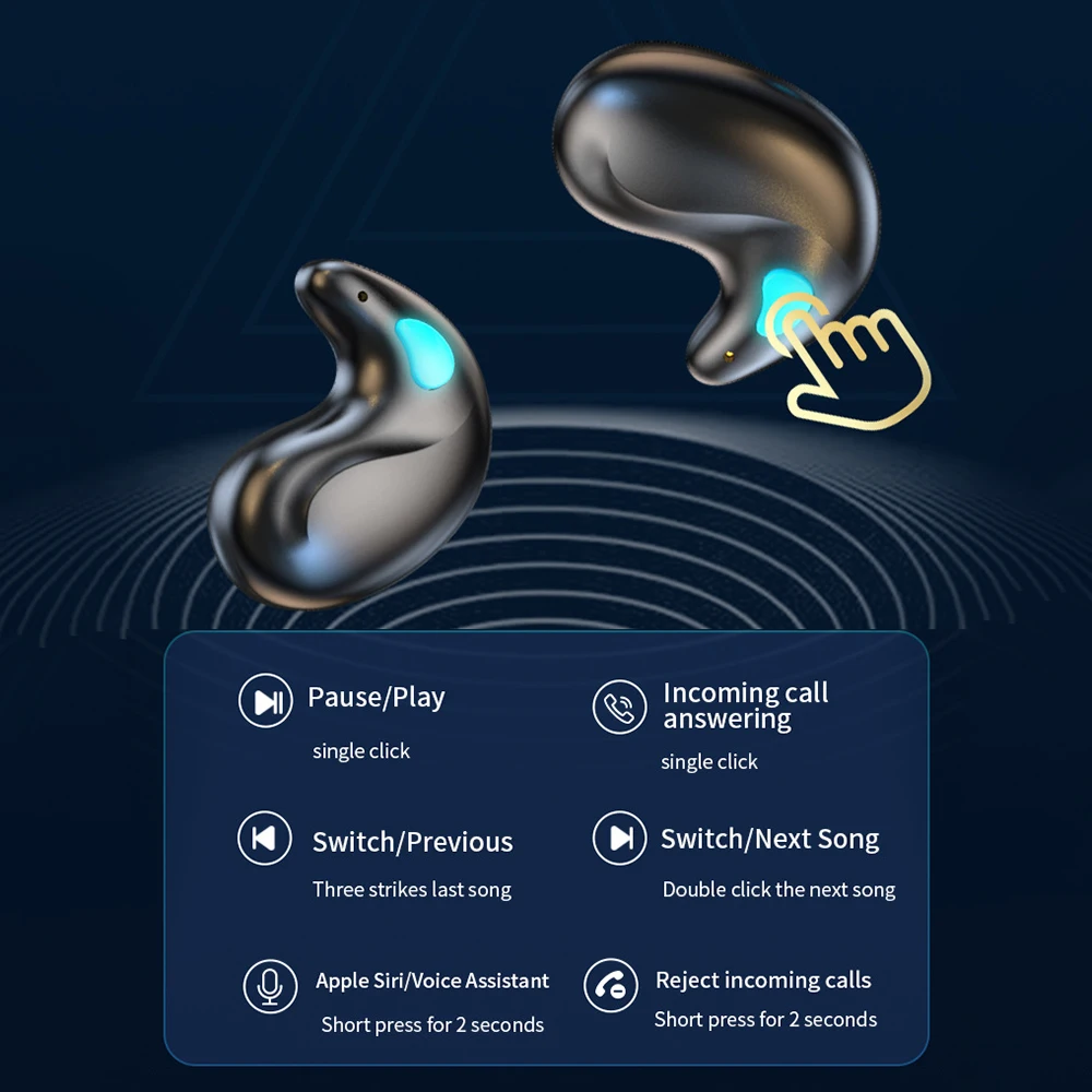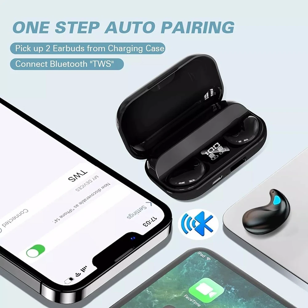 Los auriculares inalámbricos Bluetooth cuentan con un diseño ergonómico y ligero que se ajusta cómodamente a tus oídos, proporcionándote un ajuste personalizado y comodidad para usarlo durante todo el día sin dolor. Se ajustan tan bien que se mantienen firmemente en sus oídos incluso cuando hace ejercicio o corre.