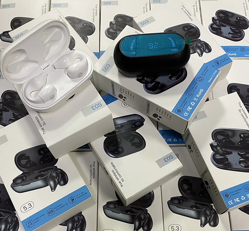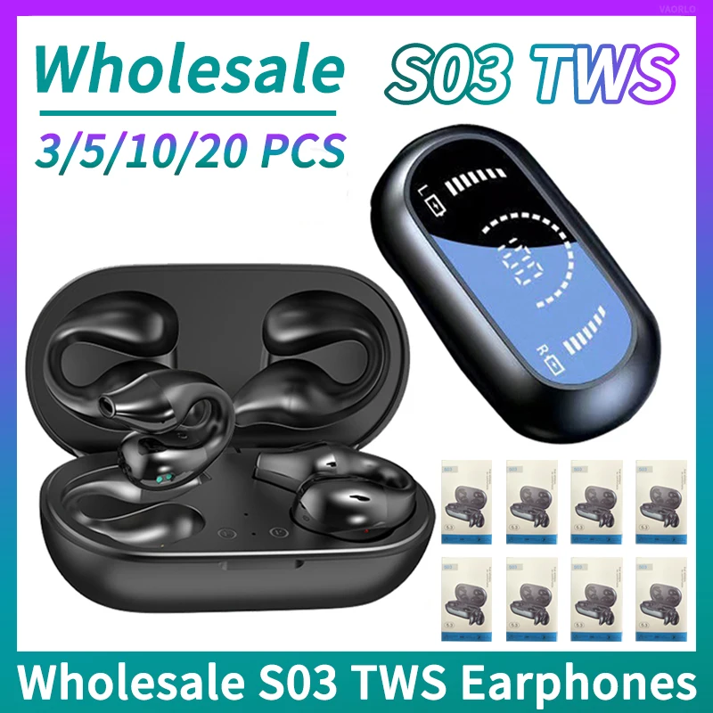 Comprar Auriculares inalámbricos S03 TWS, cascos con Bluetooth, 3/5/10/20 piezas/lote, con Clip para la oreja, conducción ósea, venta al por mayor