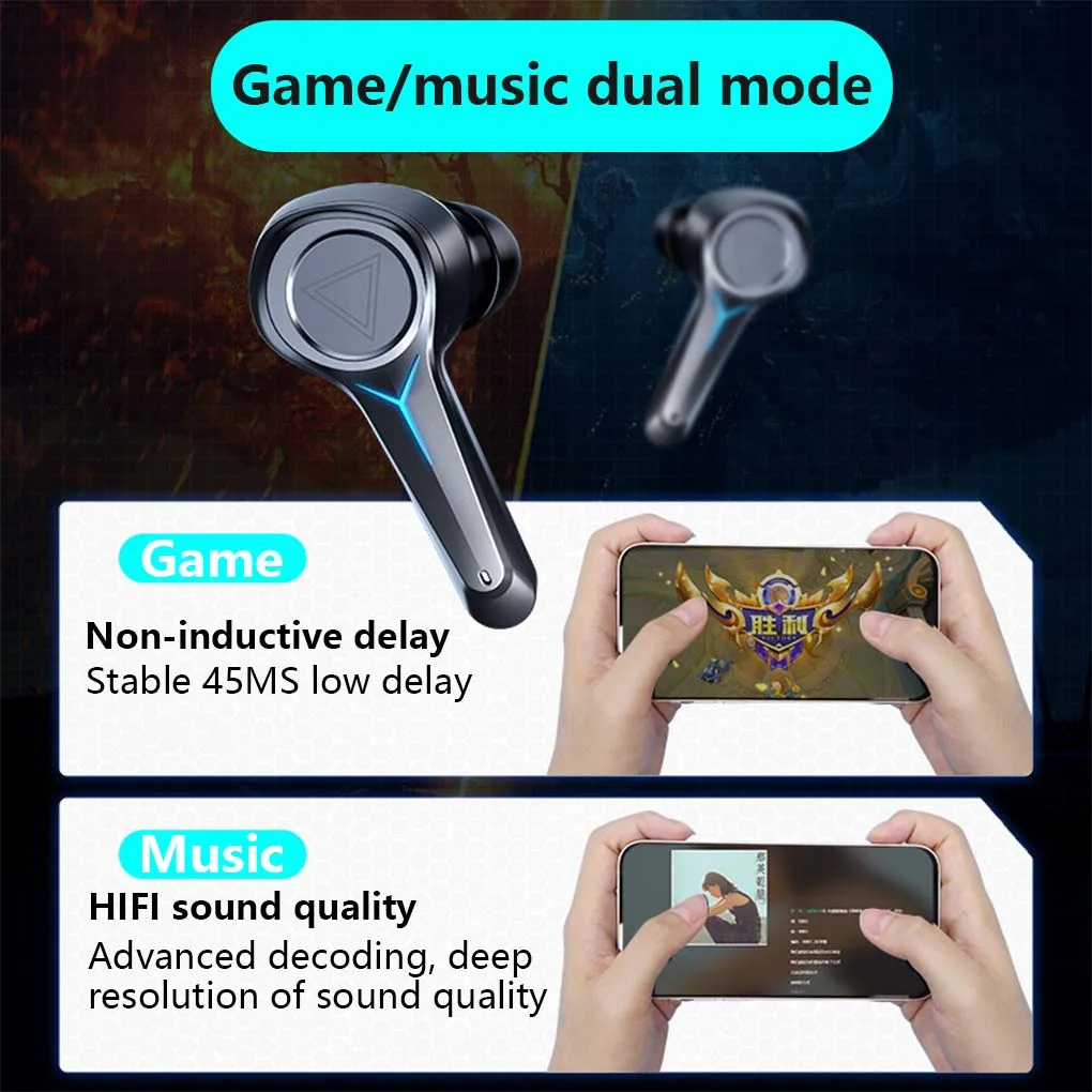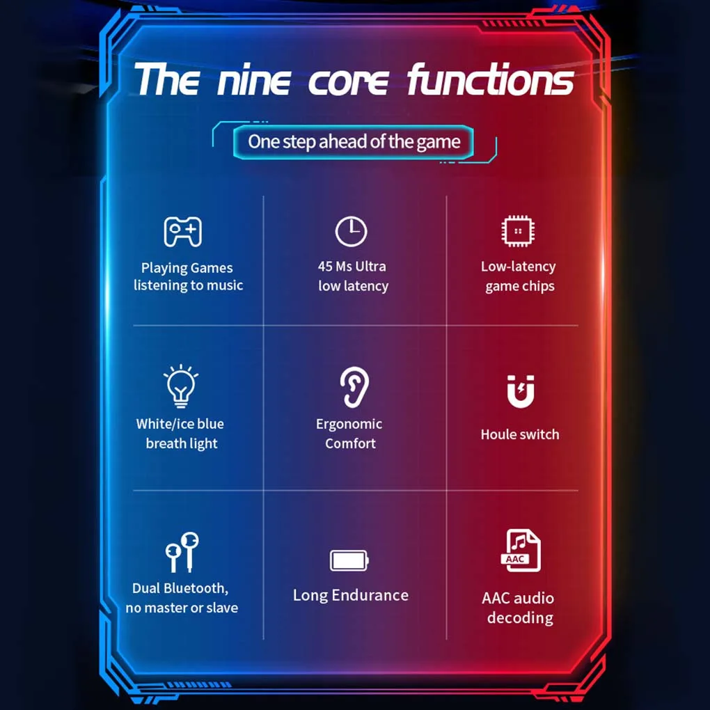 Descripción: El auricular inalámbrico para juegos tiene un retraso de 0.045 segundos, que está cerca del efecto de una conexión por cable y puede mejorar efectivamente el registro del juego. Los auriculares deportivos en la oreja adoptan chips de baja latencia y la conexión inalámbrica es más estable y fluida. Mini auriculares para exteriores con un altavoz grande, el sonido es fuerte, adiós a la calidad del sonido en bruto. Tanto el compartimento de carga como el auricular están equipados con luces de respiración independientes, con deslumbrantes efectos de iluminación LED brillantes y oscuros. El auricular compatible con Bluetooth tiene un diseño ergonómico, estable, no es fácil de caer y es cómodo.