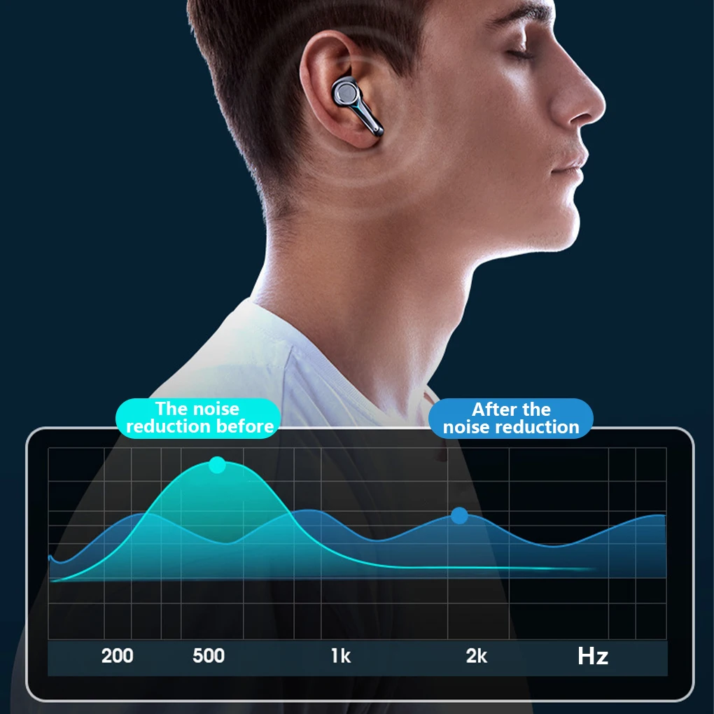 Especificación: Color: Como se muestra en las imágenes. Material: ABS. Tamaño: 6x3x5,3 cm. Versión compatible con Bluetooth: V5.0. Tiempo de reproducción: 5 horas. Tiempo en espera: 150 horas. Tiempo de carga: 1 hora. Relación señal-ruido: ≥ 90dB. Rango de frecuencia: 50HZ-20KHZ. Capacidad de la batería del auricular: 2x50mAh. Capacidad de la batería de la caja de carga: 800mAh. Voltaje de carga: 5V. Puerto de carga: Tipo-C. Indicación de voz: Recordatorio de batería baja, cambio entre chino e inglés.