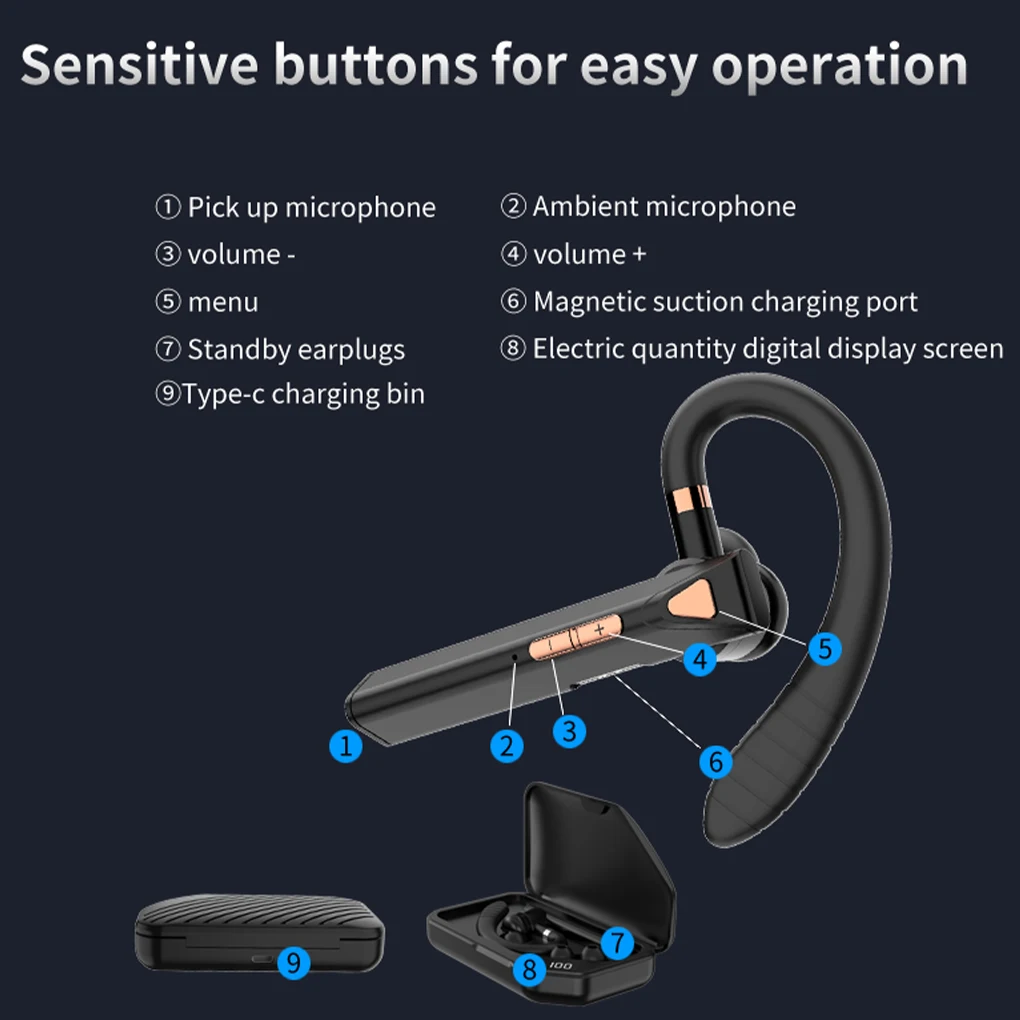 Tiempo de uso prolongado: batería integrada de gran capacidad y equipado con un estuche de carga, este auricular inalámbrico único puede funcionar durante mucho tiempo.