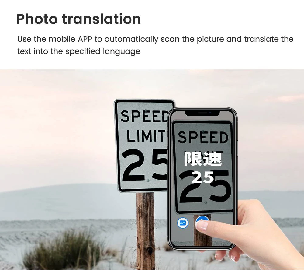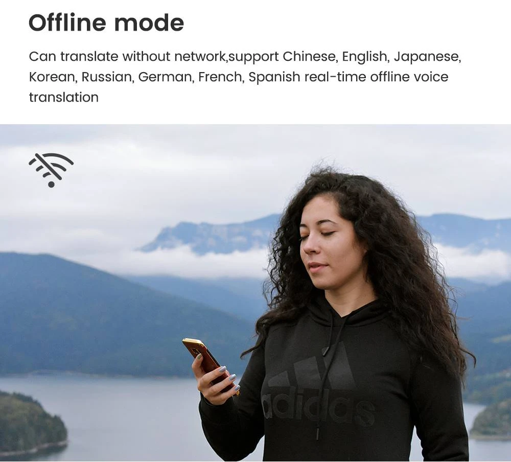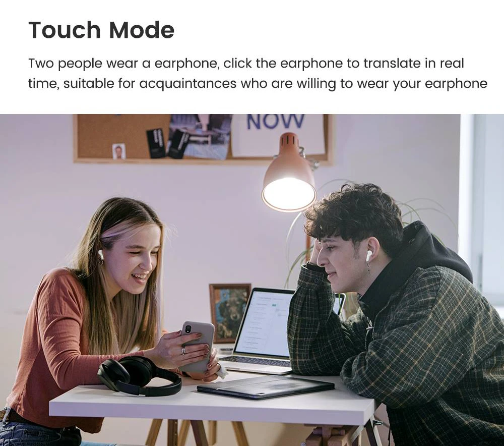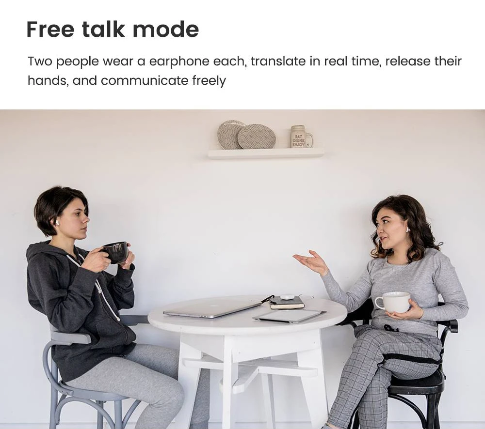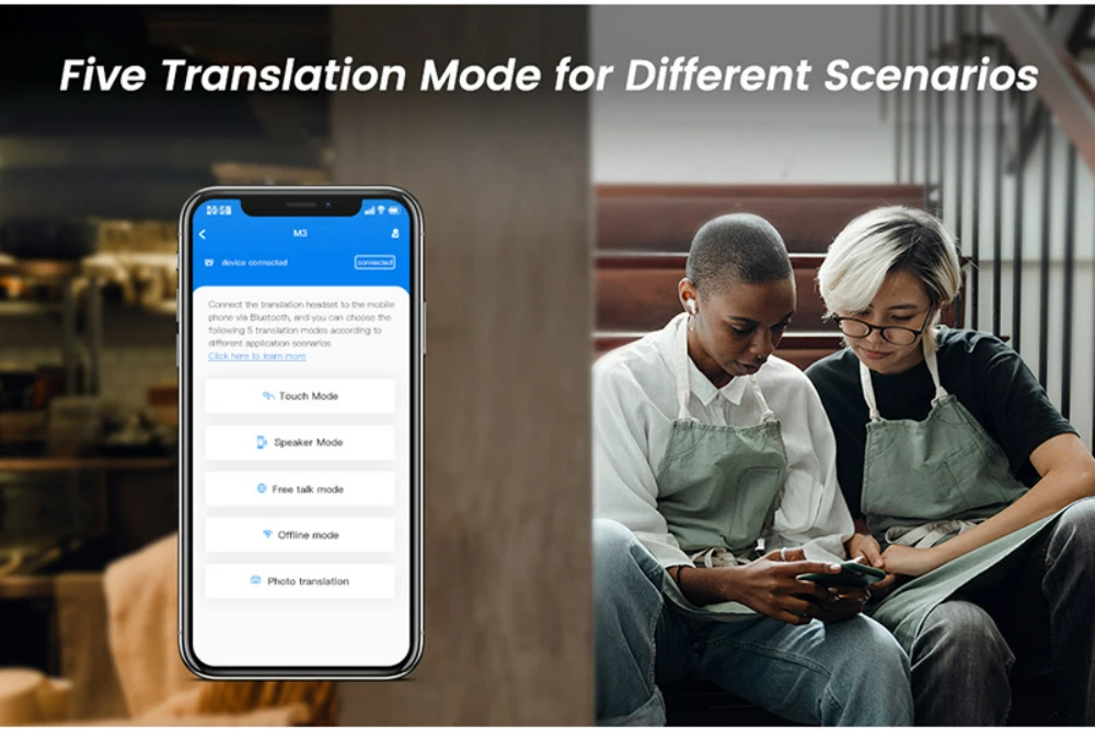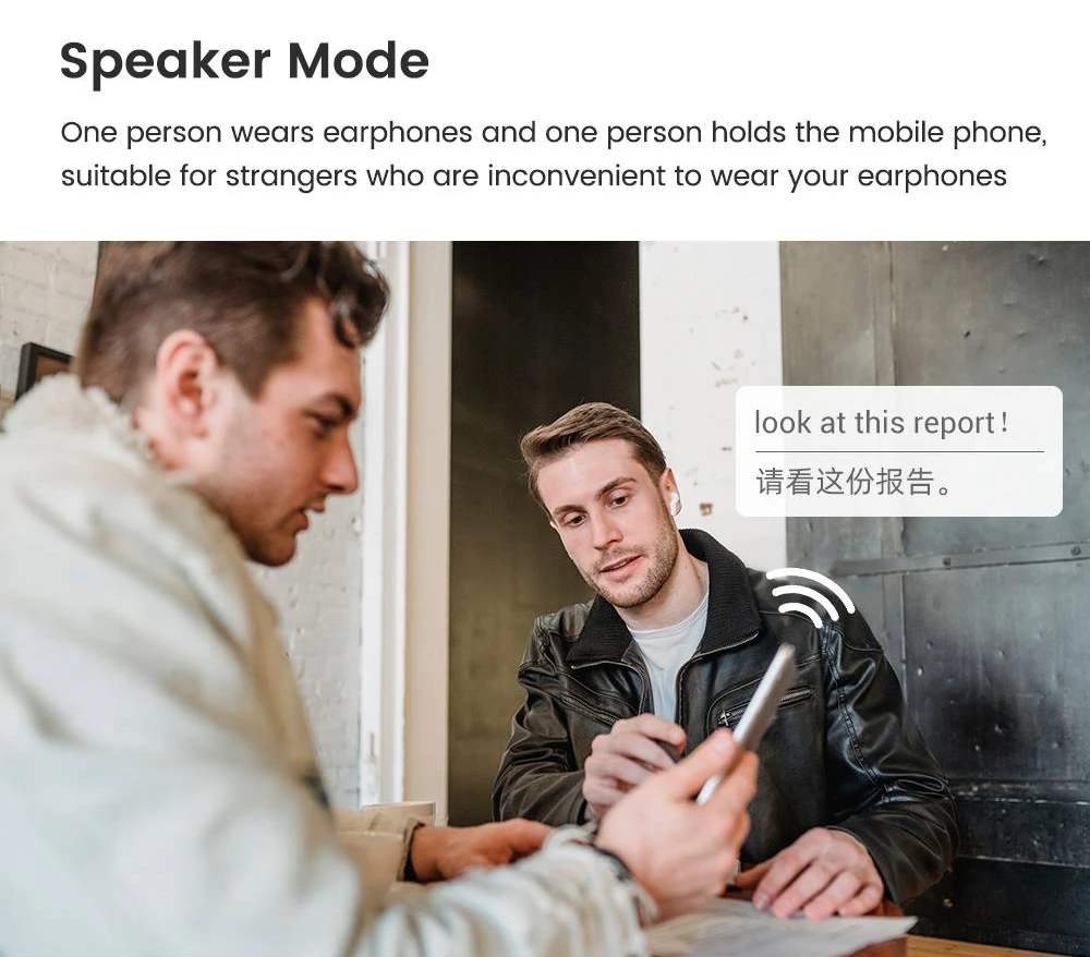 【 Cinco modos de traducción para cualquier escenario de comunicación】 Los auriculares de traducción M3 ofrecen cinco modos de traducción diferentes para adaptarse a una variedad de escenarios de comunicación. Ya sea que necesite usar el modo táctil, el modo de altavoz, el modo de conversación libre, el modo sin conexión o la traducción de fotos, estos auriculares garantizan que pueda comunicarse de manera clara y efectiva en cualquier situación.