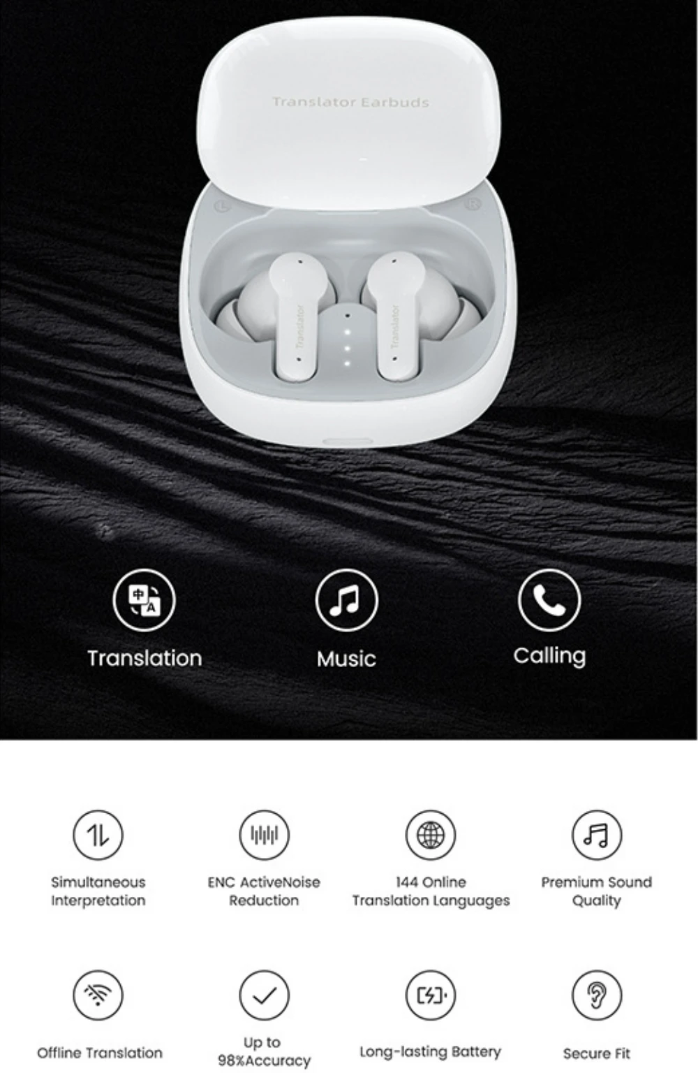 Comprar Auriculares inalámbricos con traductor, audífonos BT con estuche de carga, 4 modos, compatible con traducción en tiempo Real, 74 idiomas