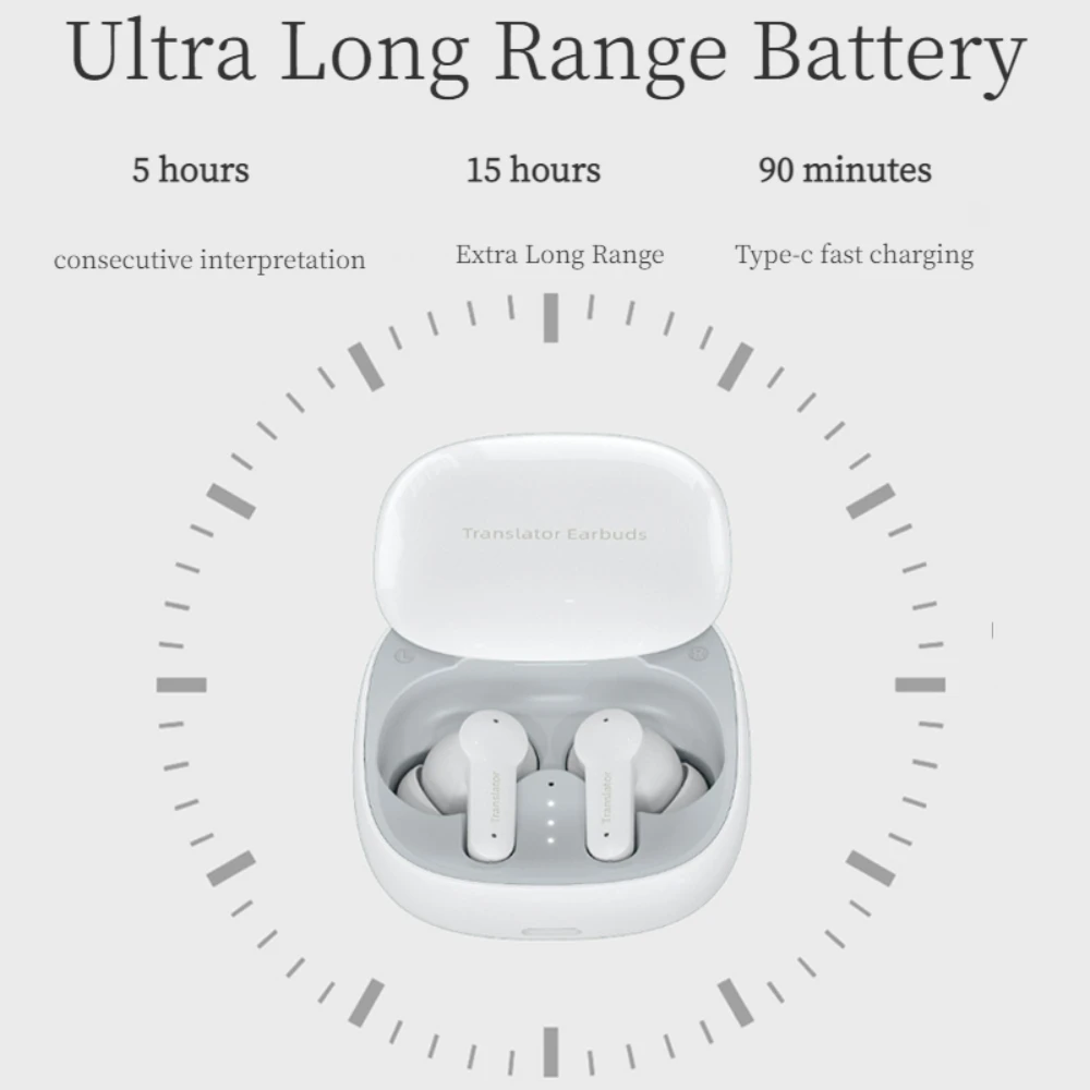 【Batería de larga duración, comunicación ininterrumpida】Cuando se usan con el estuche de carga, los tapones para los oídos tienen una duración de batería de 15 horas, lo que le permite usarlos durante mucho tiempo sin interrupciones. Además, los auriculares pueden traducirse continuamente hasta 5 horas, perfectos para viajes largos o largos períodos de tiempo. Con esta larga duración de la batería, puede confiar en que los auriculares proporcionarán una comunicación ininterrumpida.