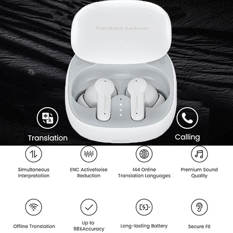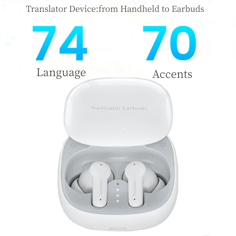 Comprar Auriculares inalámbricos con traductor, audífonos BT con estuche de carga, 4 modos, compatible con traducción en tiempo Real, 74 idiomas