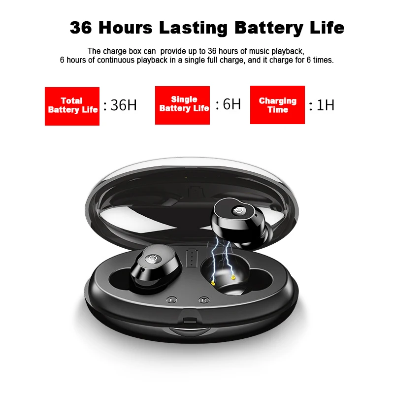 2. Con diseño de caja de carga portátil, puede mantener la batería llena. Y necesario para conducir, trabajar, deportes de interior y exterior. El Almacenamiento de 800mAH puede proporcionar 6 veces la carga completa de los auriculares.