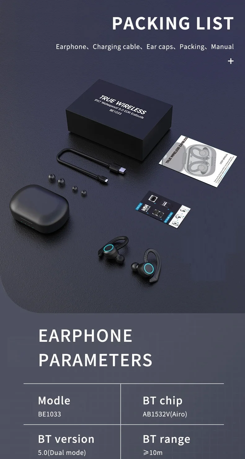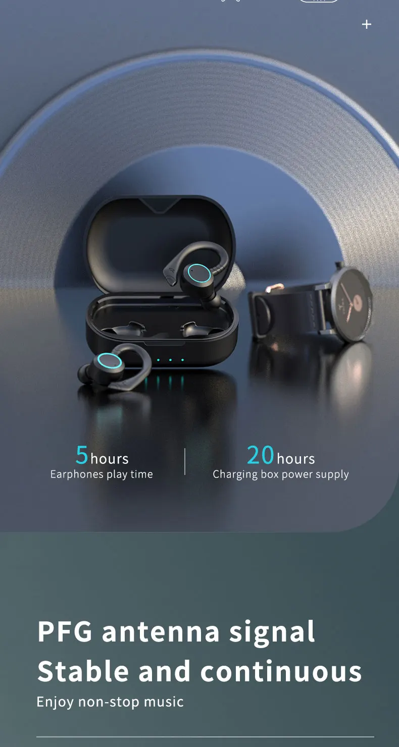 【Diseño deportivo 】los verdaderos auriculares estéreo inalámbricos le brindan una experiencia sin cables y manos libres. Ajuste seguro y cómodo y diseño impermeable IPX7 hace que los auriculares sean perfectos para deportes.